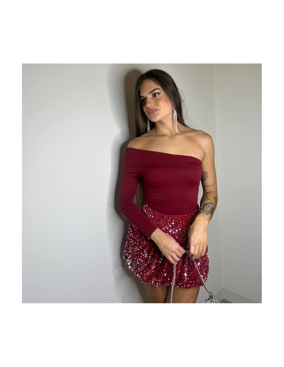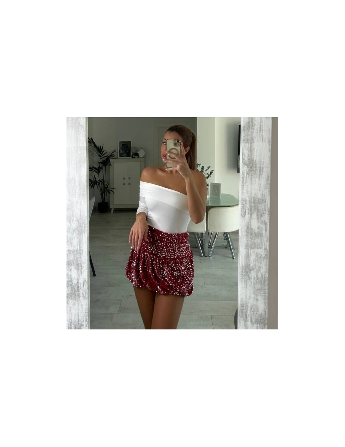 FALDA GLOBO LENTEJUELAS ROJA