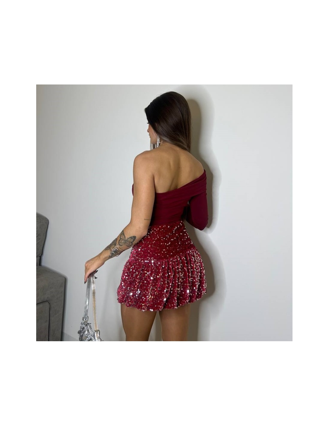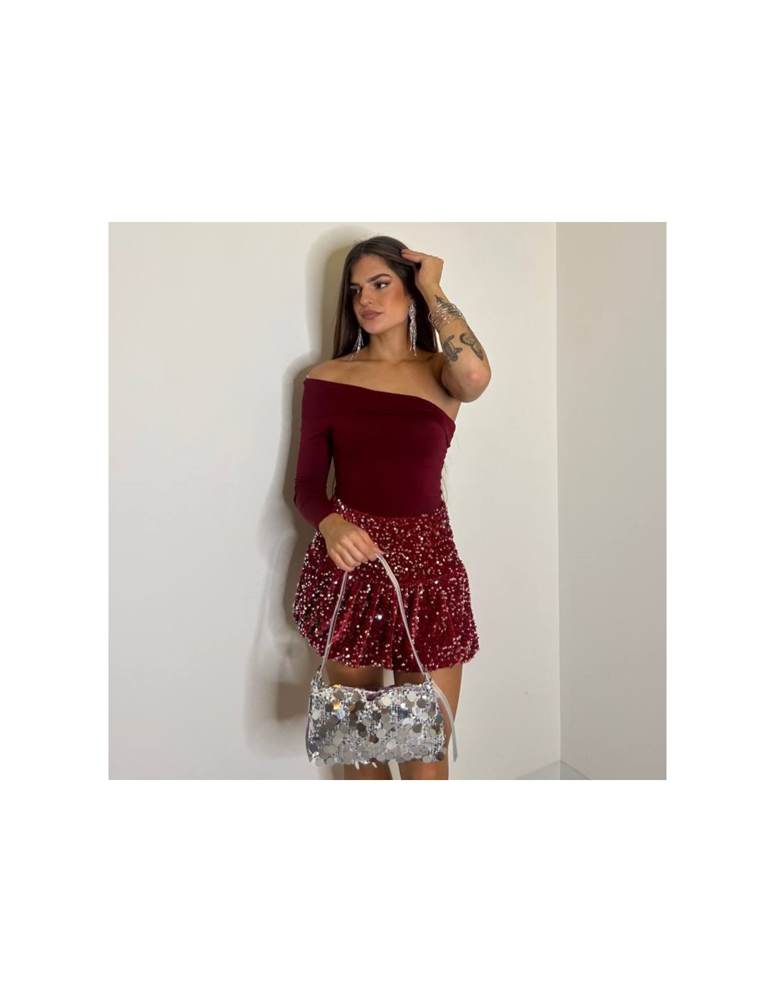 Body asimétrico en tono vino. Cierre en bajo. Talla única