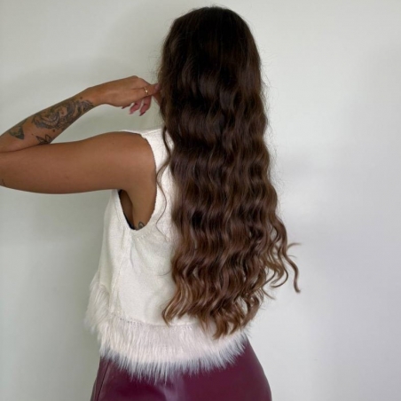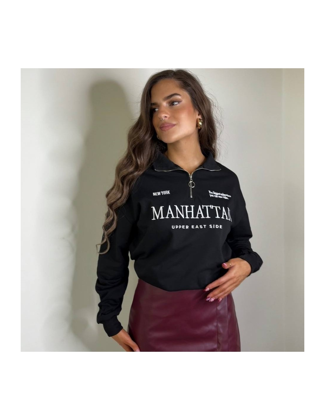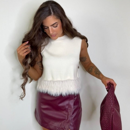 Falda pantalón efecto piel. Cierre lateral con cremallera oculta.