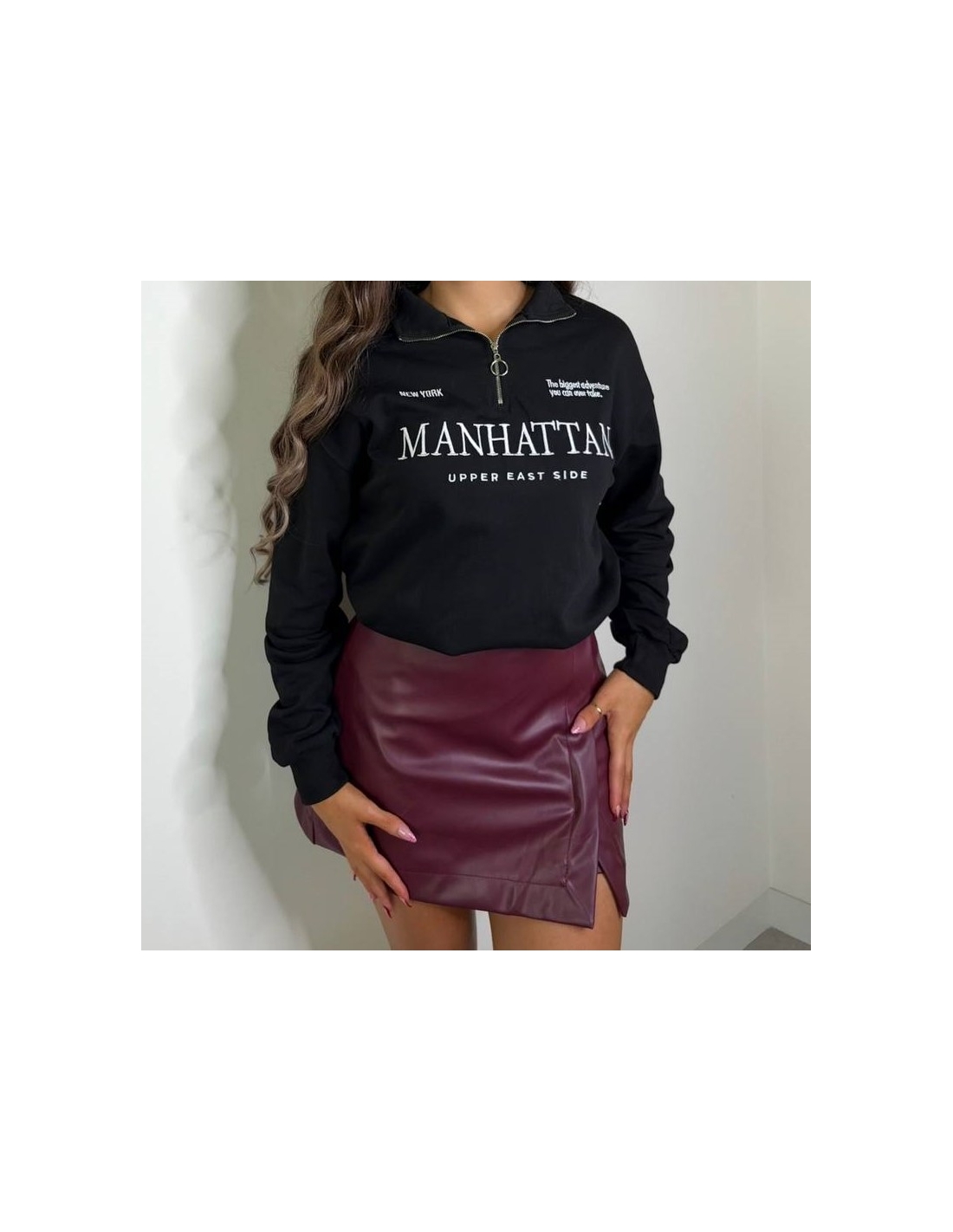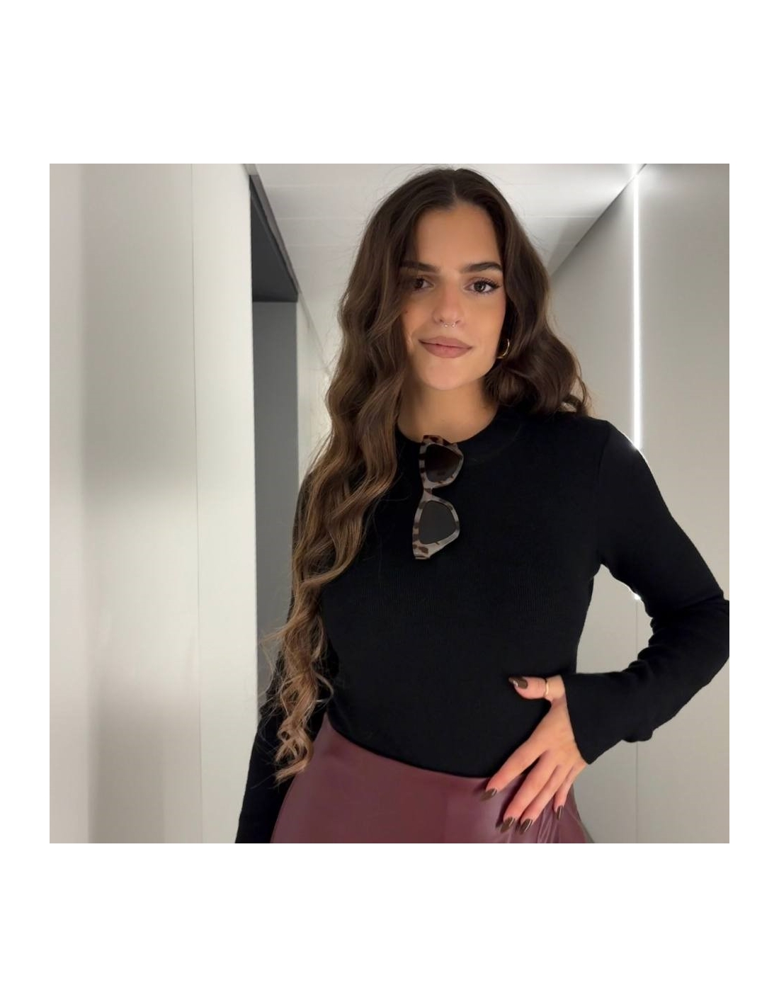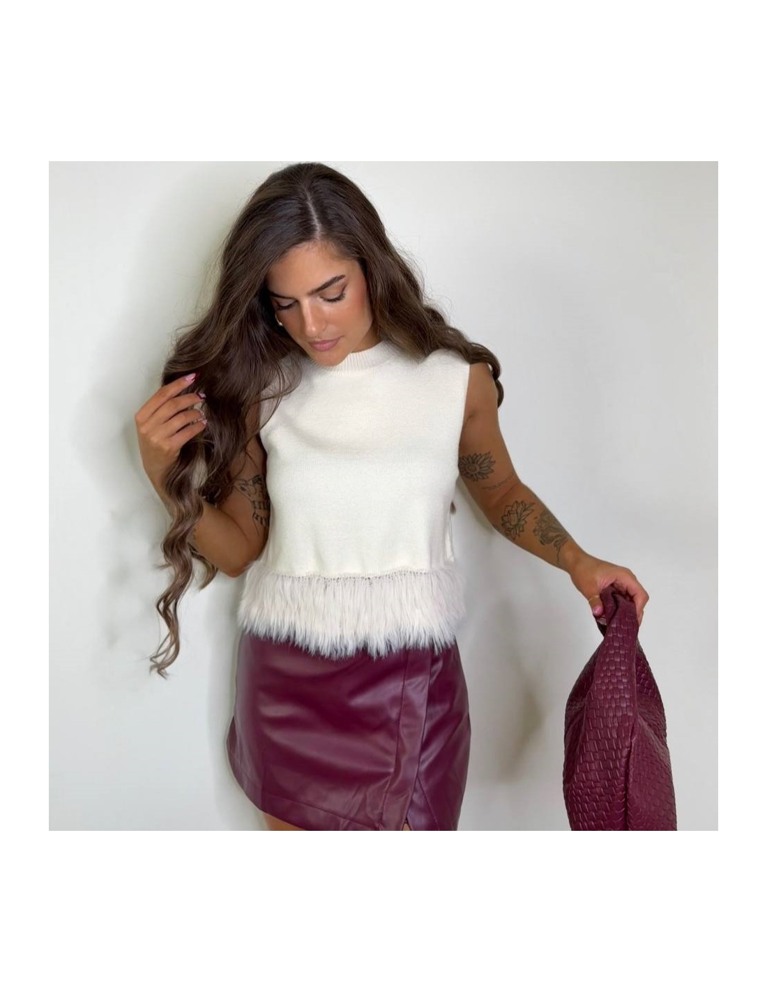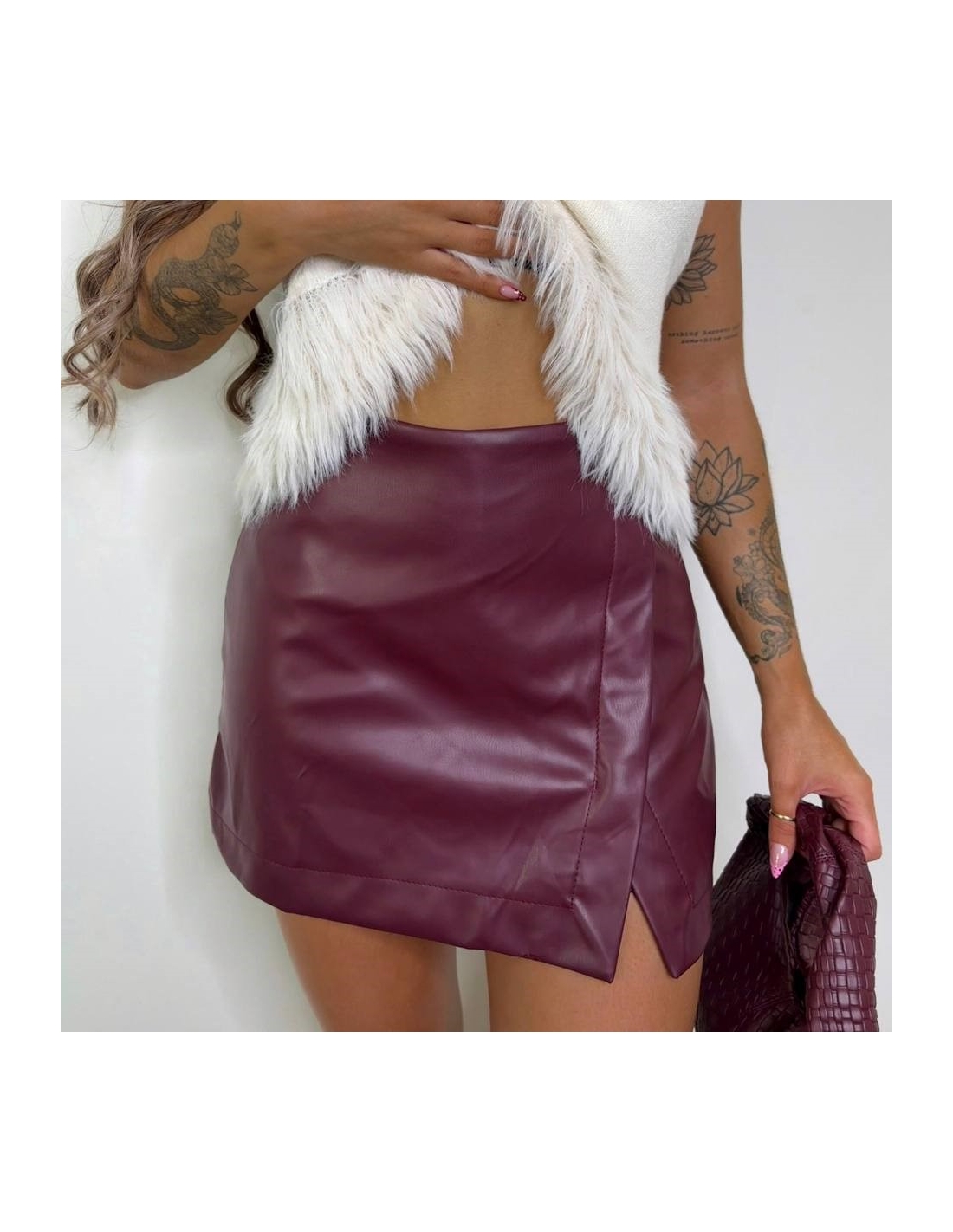 FALDA PANTALÓN EFECTO PIEL BURDEOS