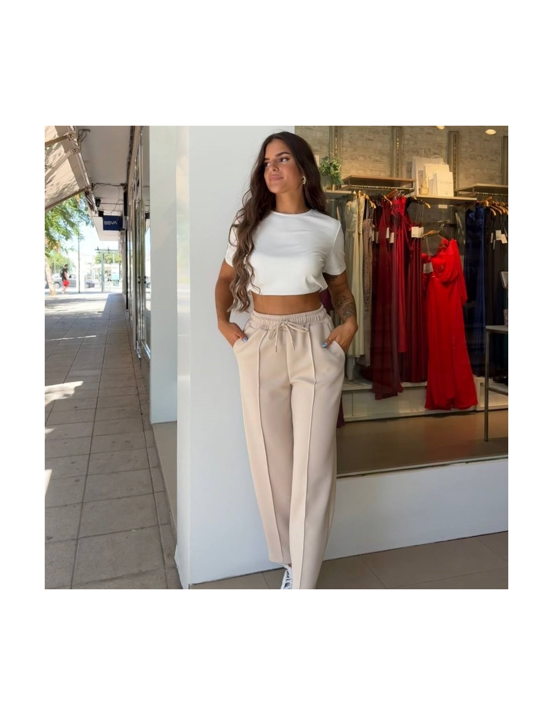 Pantalón deportivo de tiro alto. Cintura elástica. Fluido. Talla única