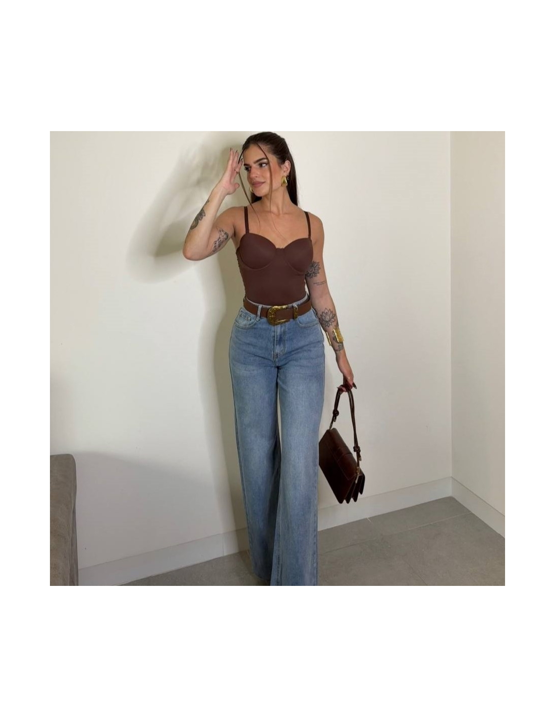 Body basic escote de corazón en tono choco. Efecto faja. Push up. Cierre en bajo. Con tirantas extraíbles regulables a tono. Elástico.