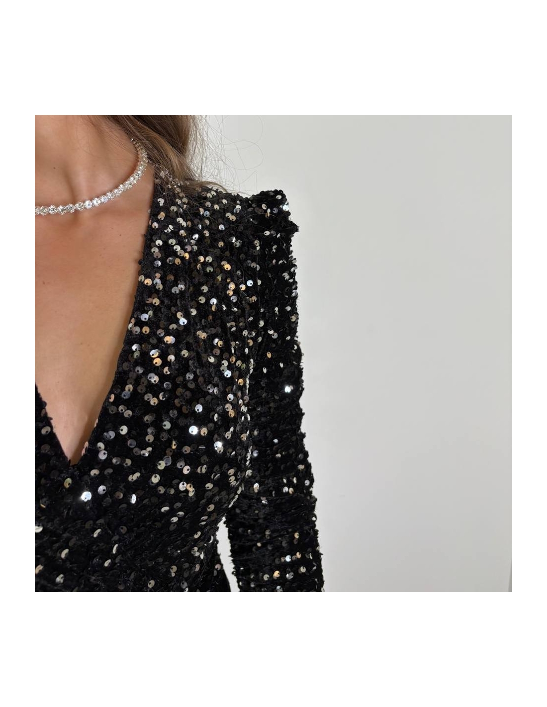 Vestido fruncido de lentejuelas. Talla única.