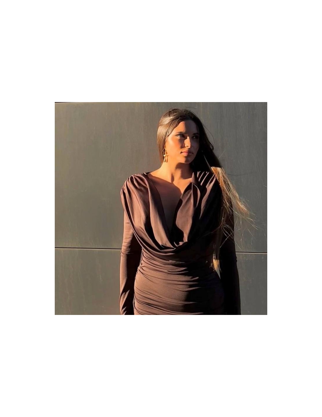VESTIDO HOMBRERA ESCOTE FLUIDO CHOCO