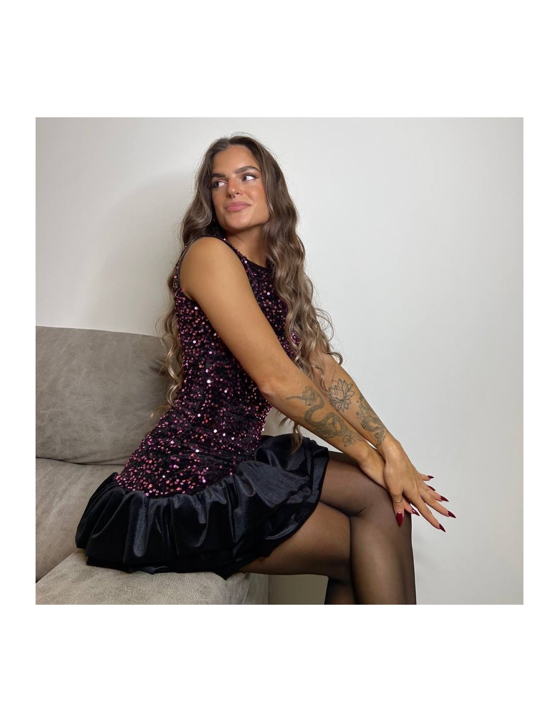 Vestido globo de lentejuelas con volantes en bajo. Con forro interior a tono. Elástico. Talla única