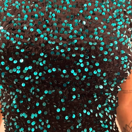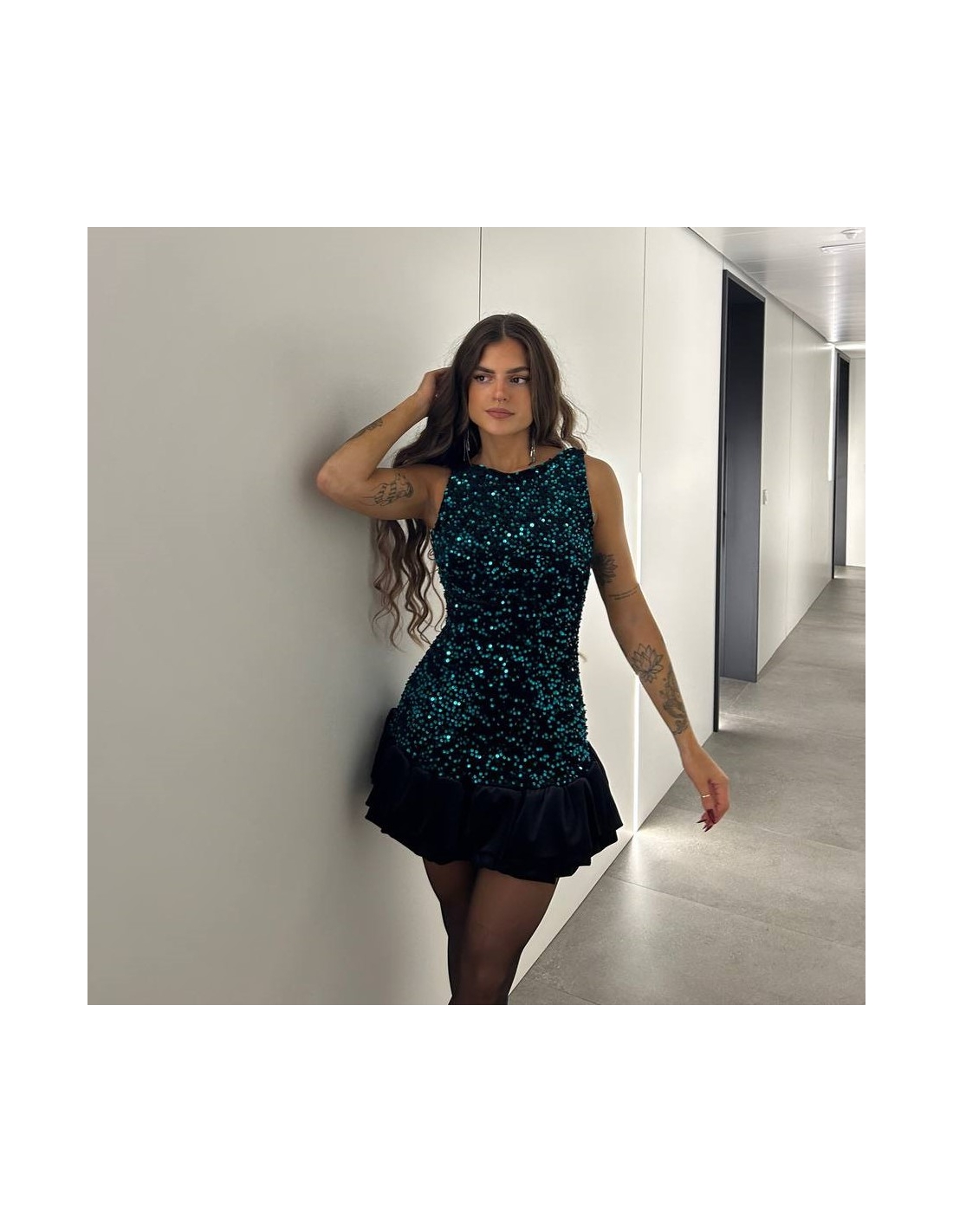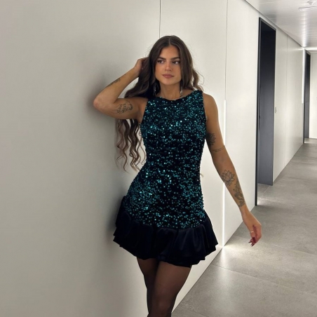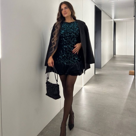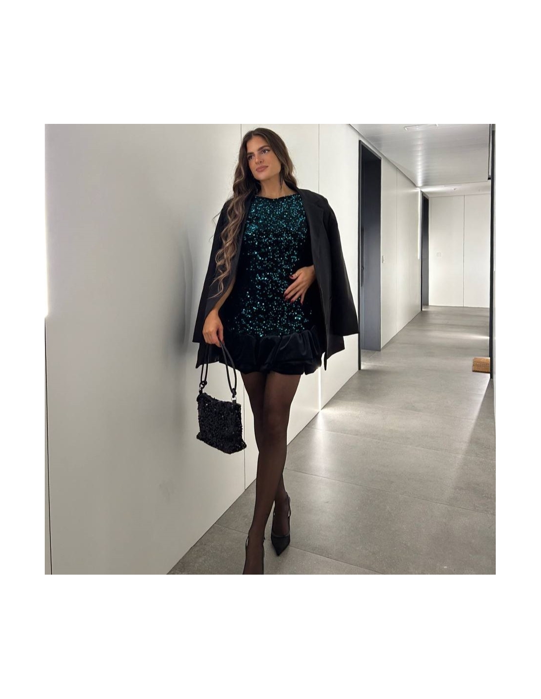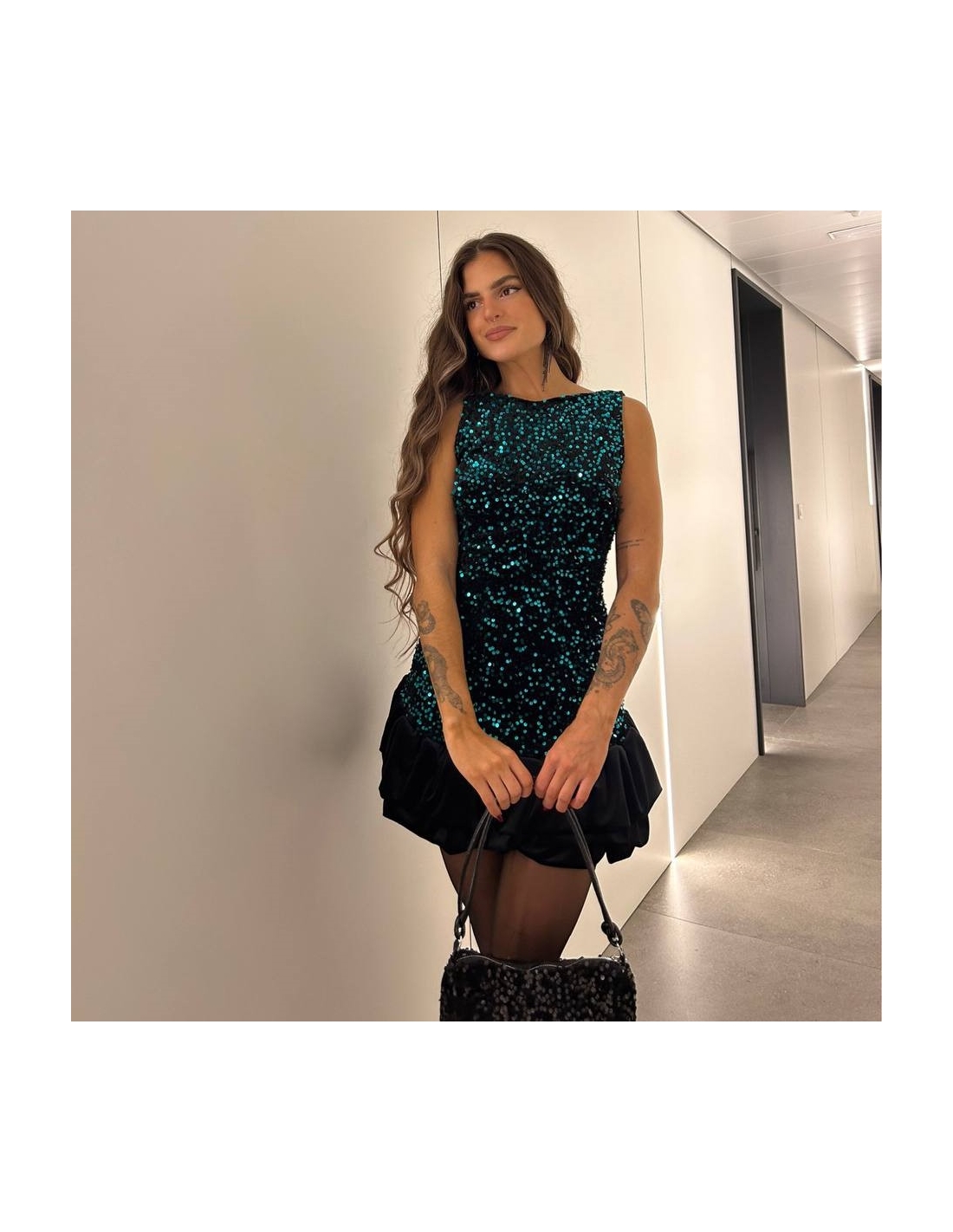 VESTIDO GLOBO LENTEJUELAS VERDE ESMERALDA