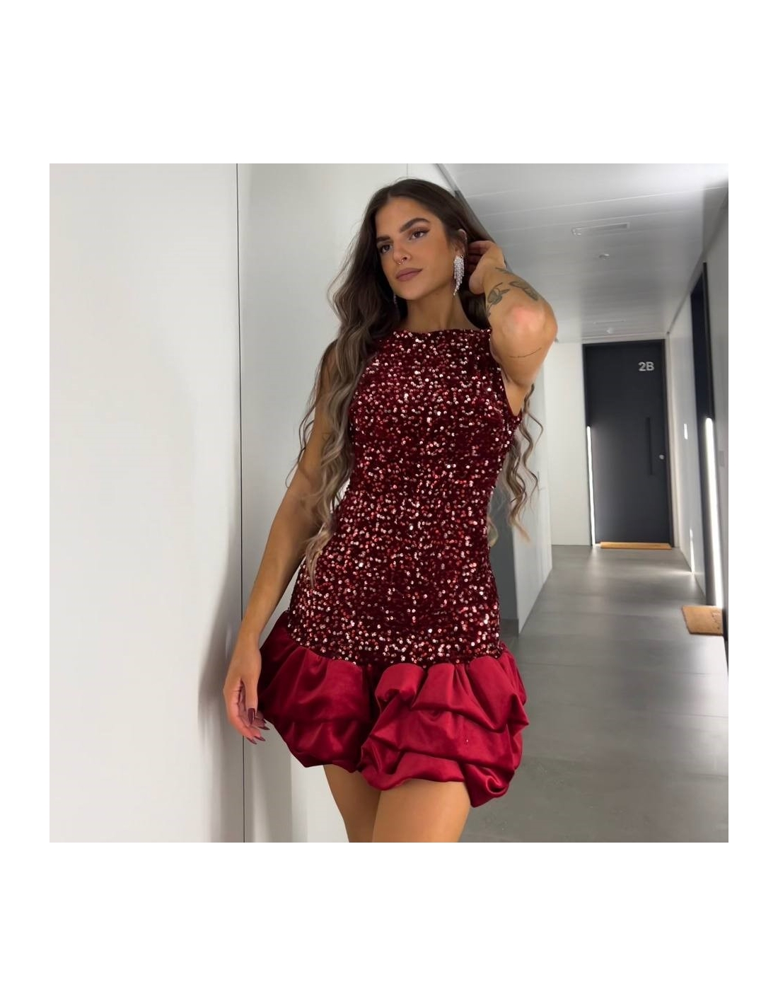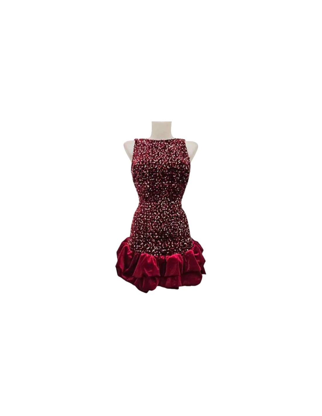 Vestido globo de lentejuelas con volantes en bajo. Con forro interior a tono. Elástico. Talla única