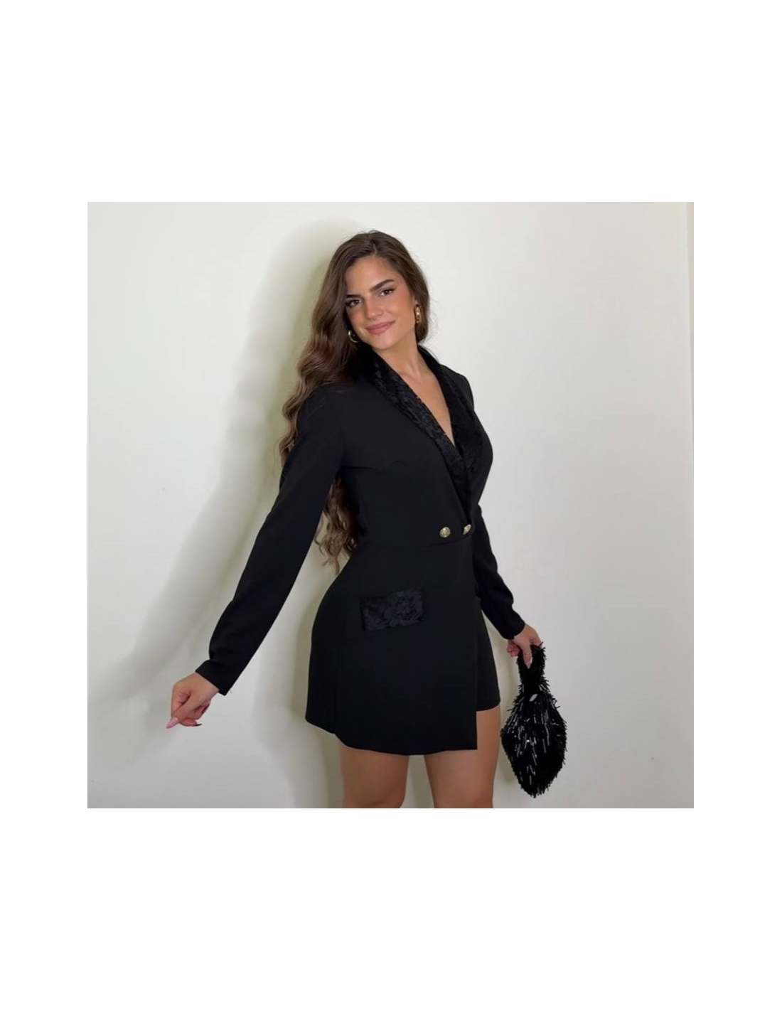 Mono corto tipo blazer con solapa de encaje . Talla única.