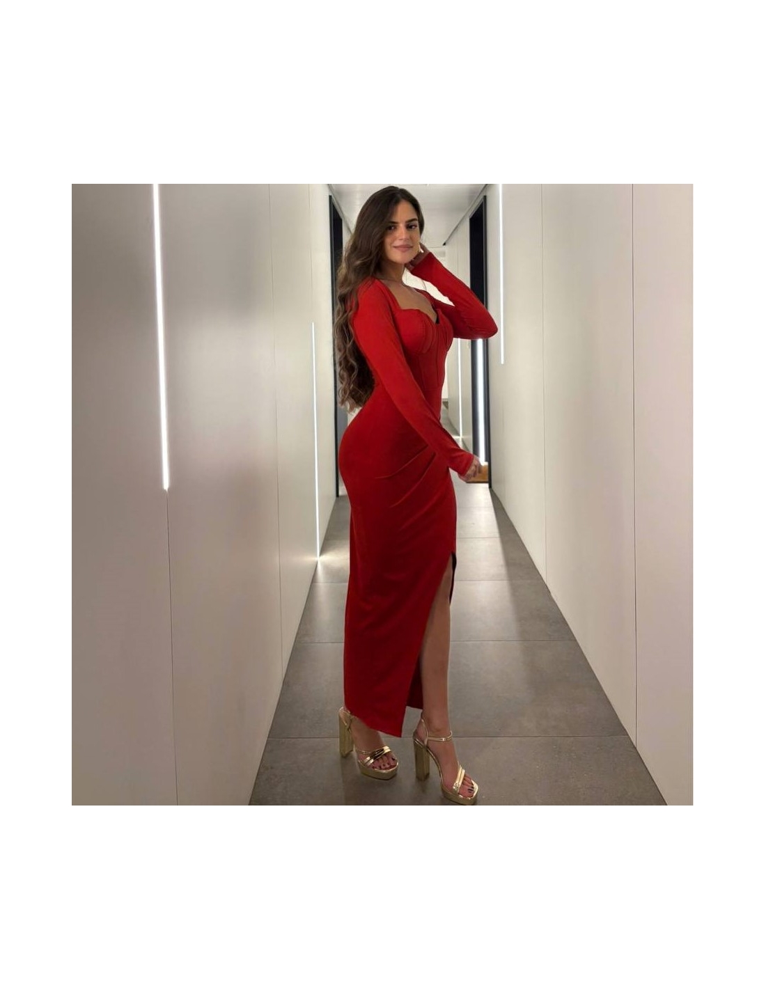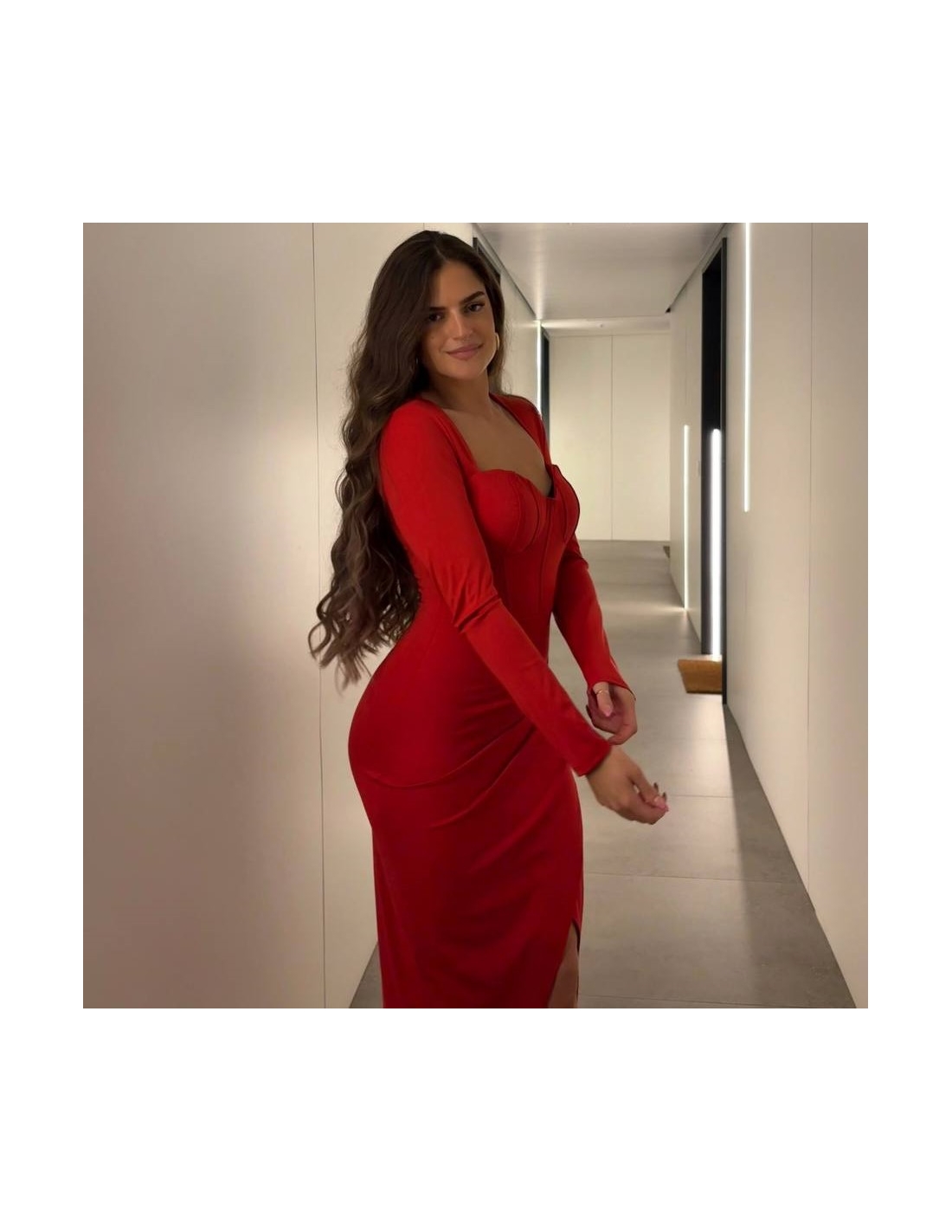 Vestido corset manga larga ajustado. Escote de corazón. Fruncido en parte delantera. Abertura delantera. Tejido doble licra. Talla única