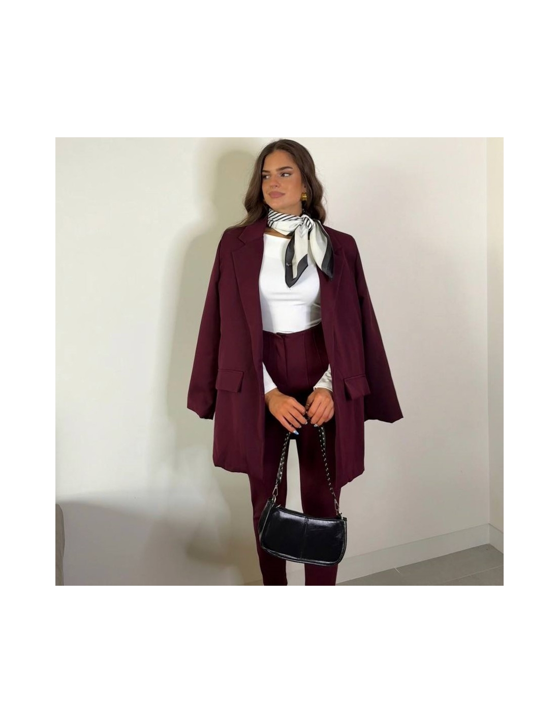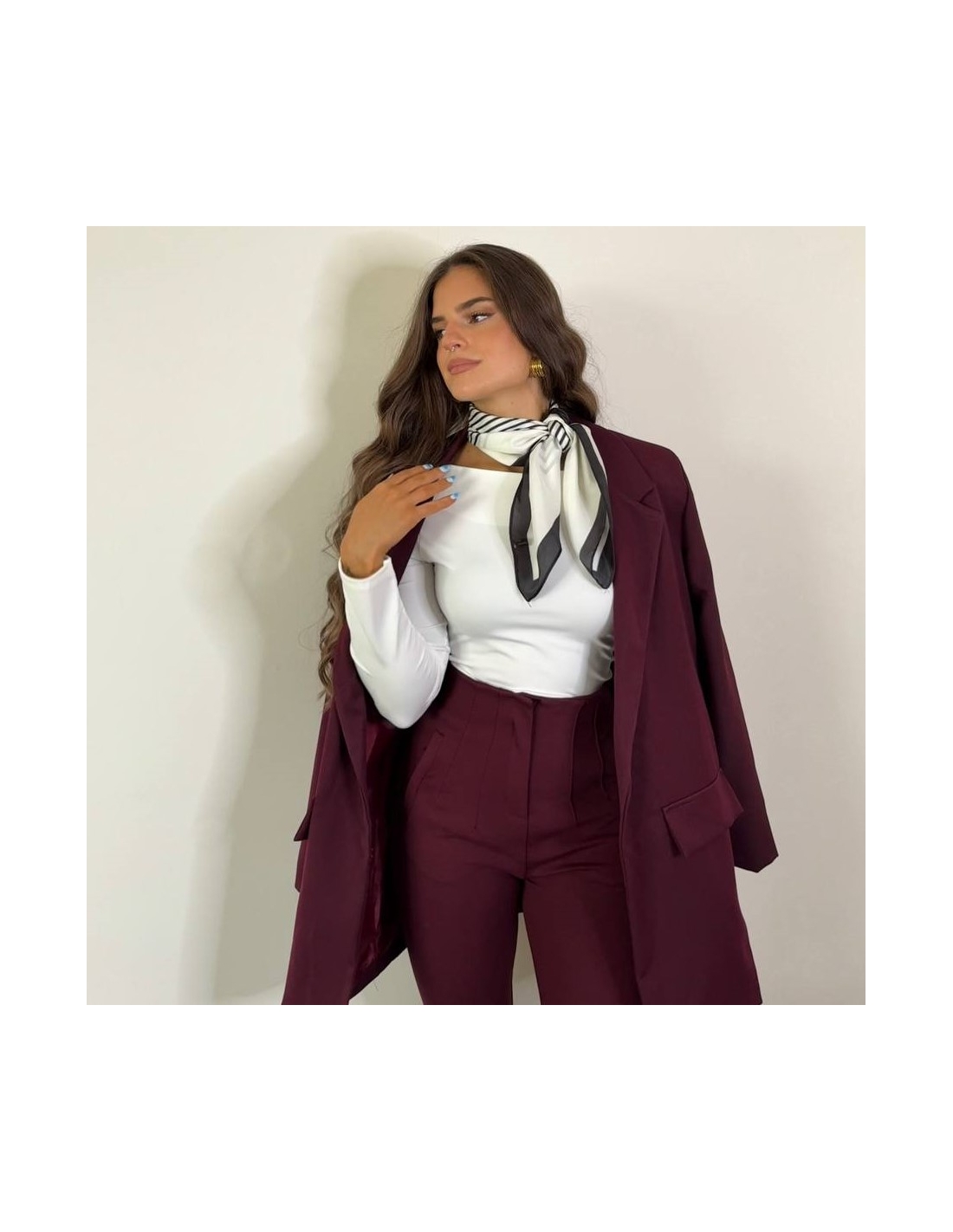 Pantalón traje ajustado de tiro alto. Tejido grueso. Cierre delantero. Falsos bolsillos delantero. Con pinzas.