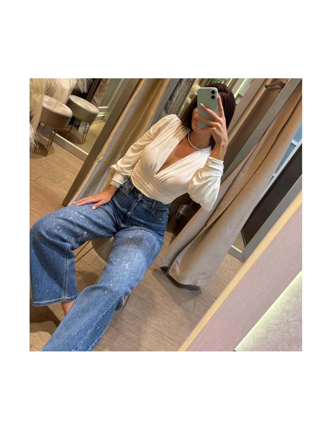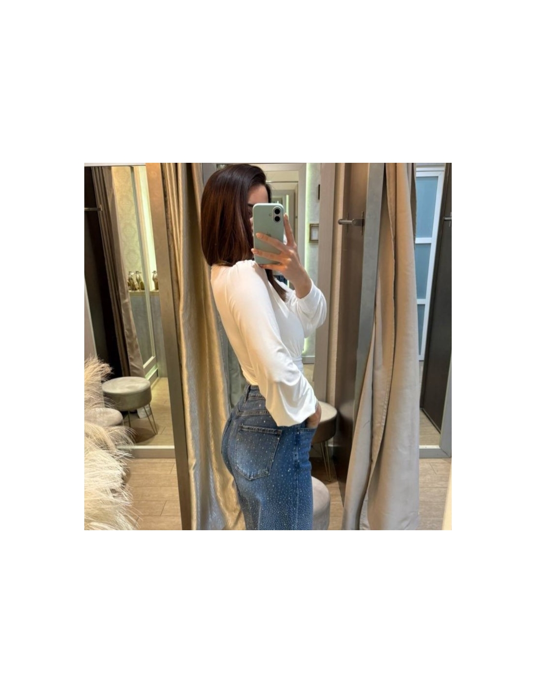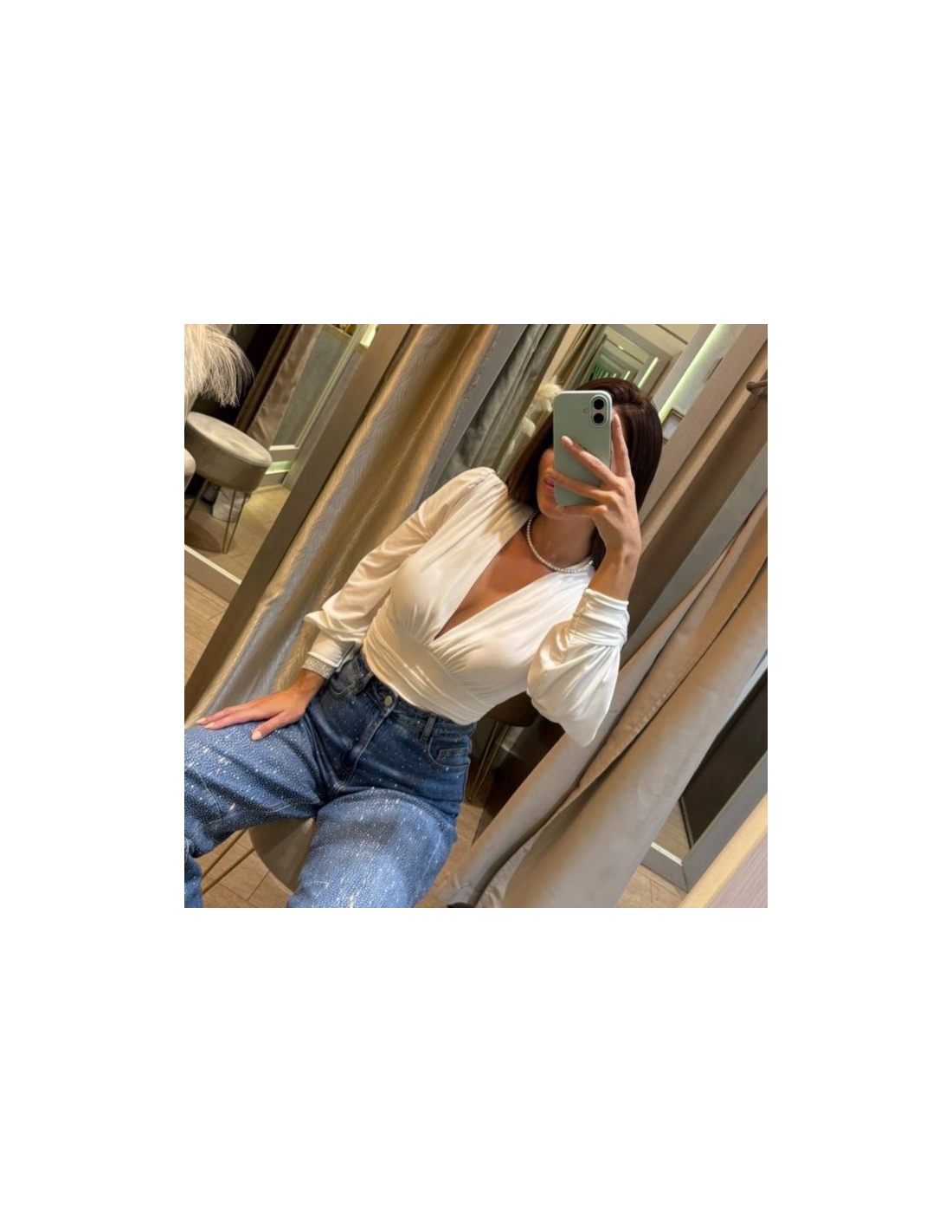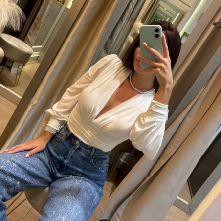 Body escote V blanco. Cascos incorporados. Talla única.