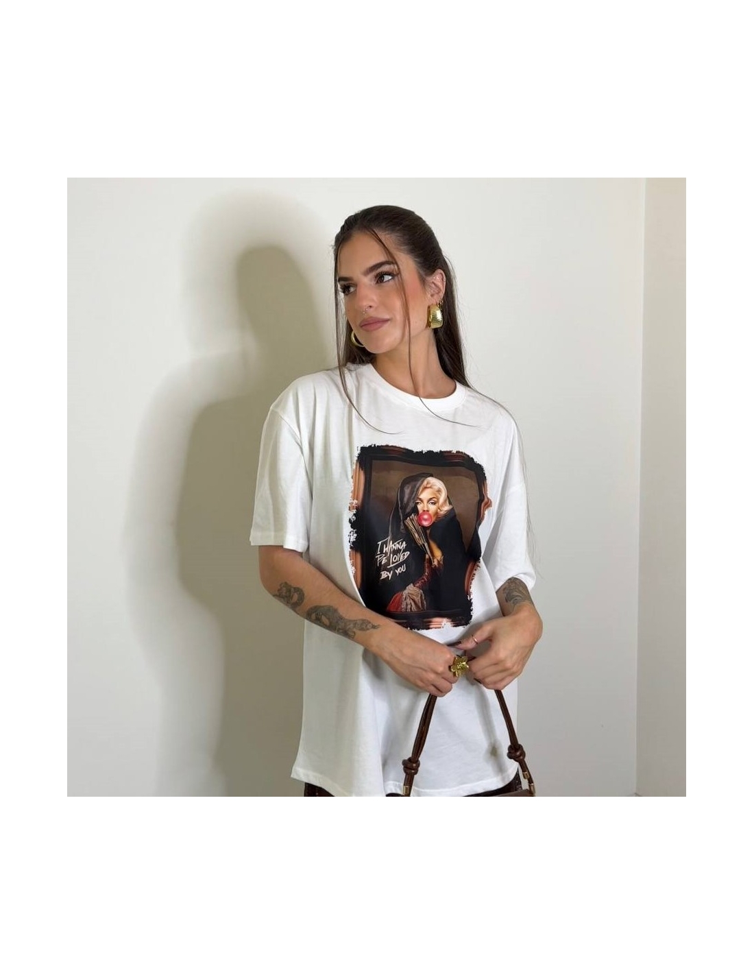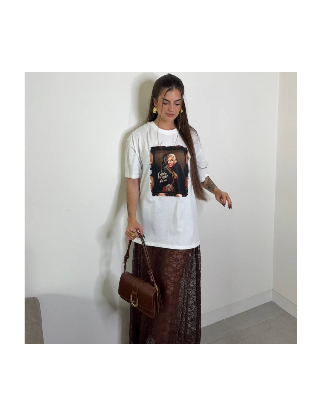 Maxi camiseta blanca estampada. Cuello redondo. De manga larga. Talla única