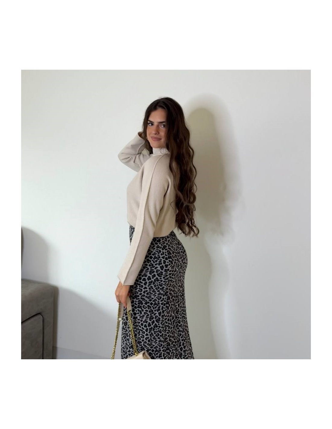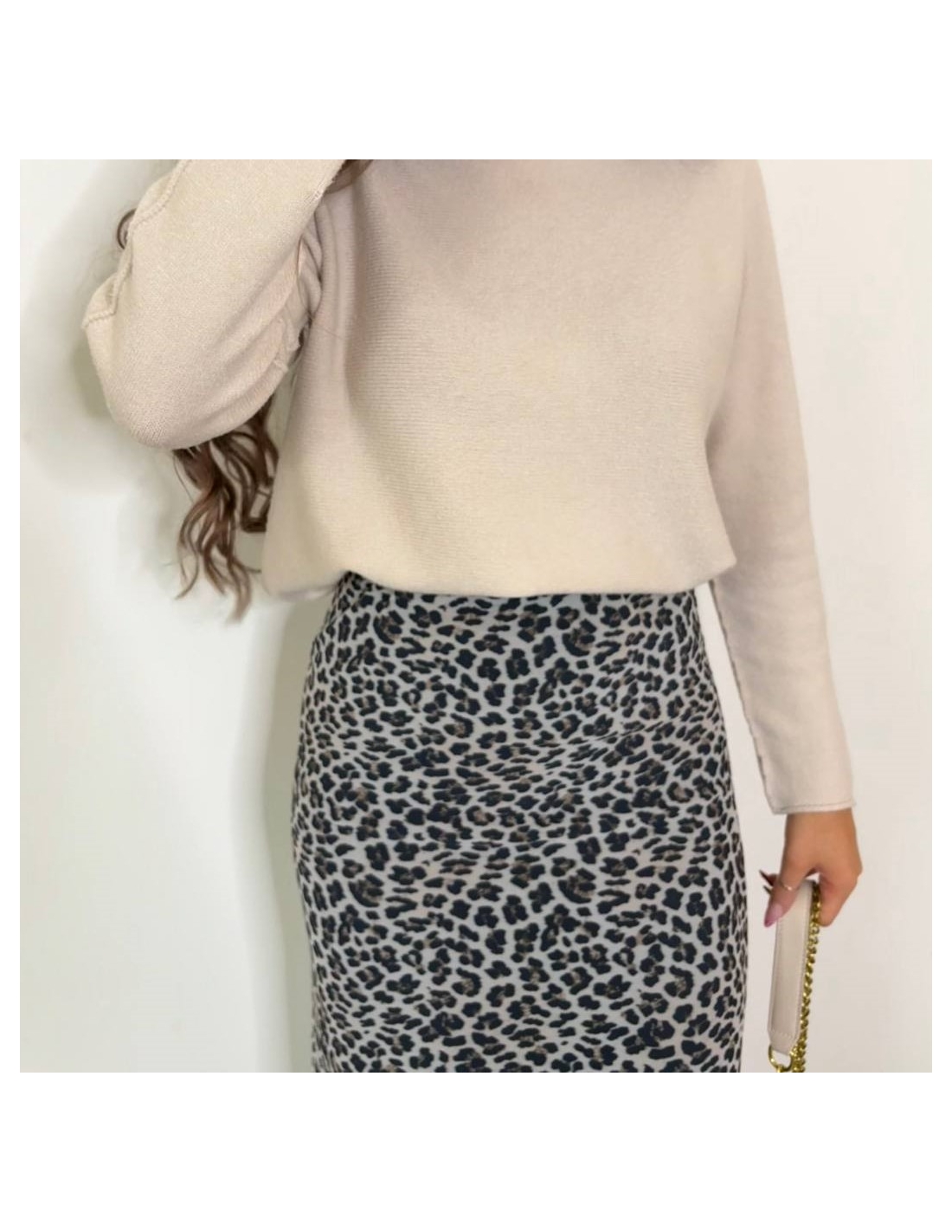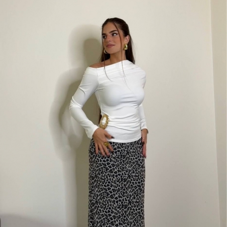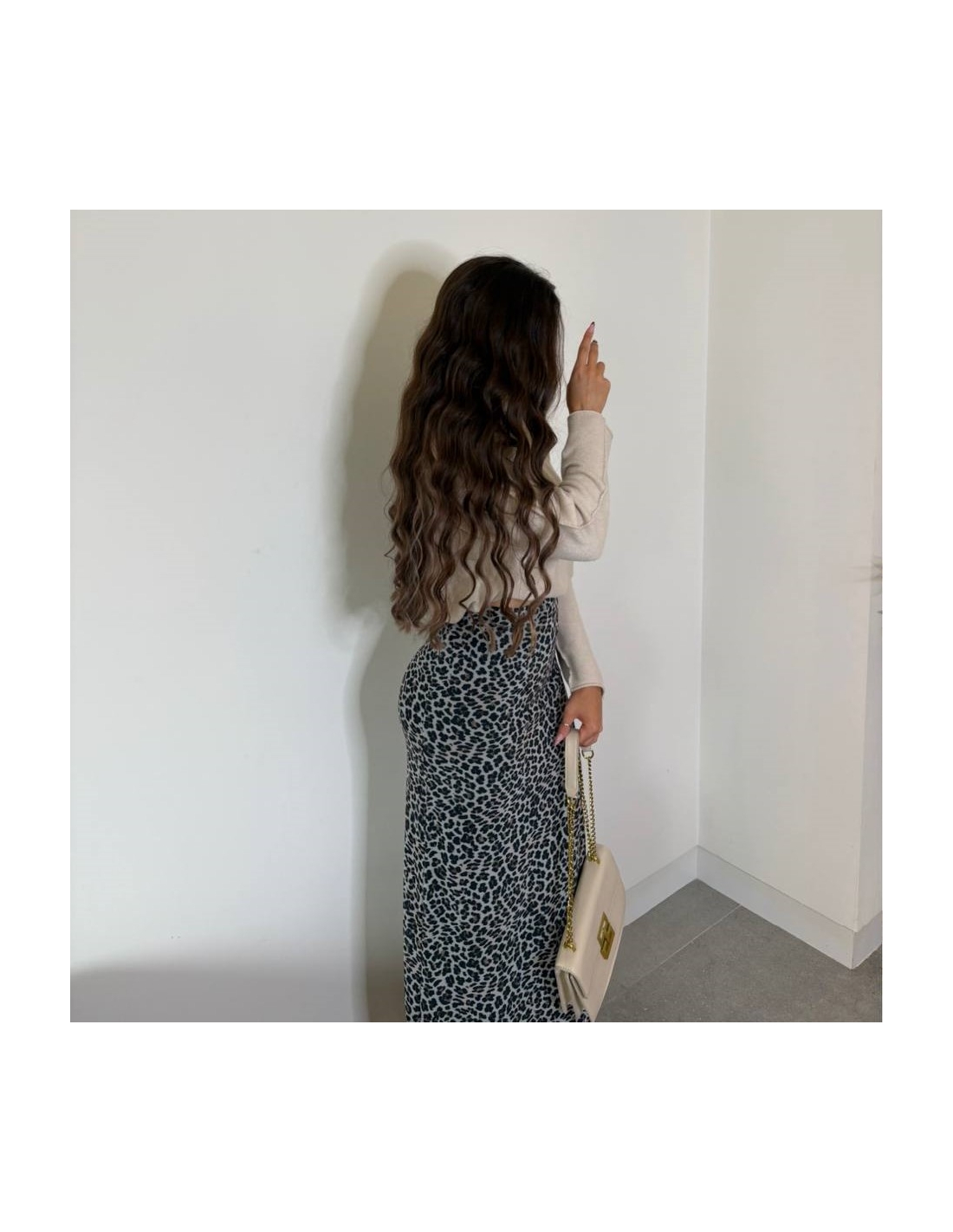 Falda midi tul estampada animal print. Cintura elástica. Forro interior. Talla única.