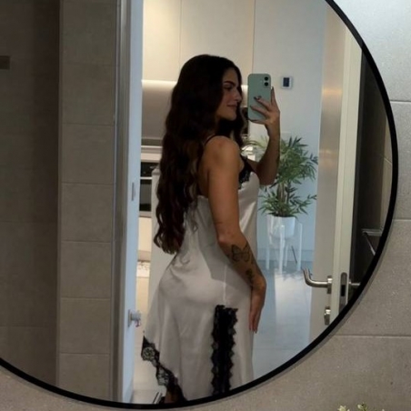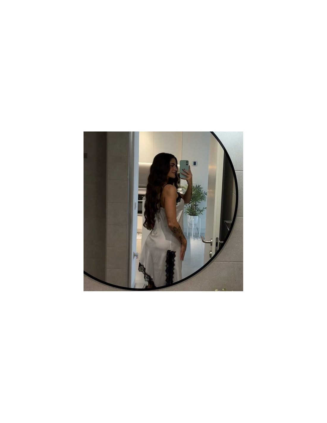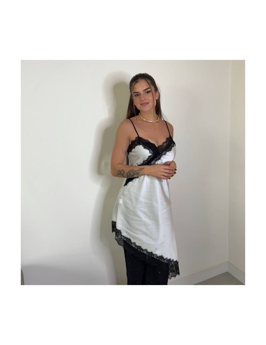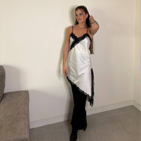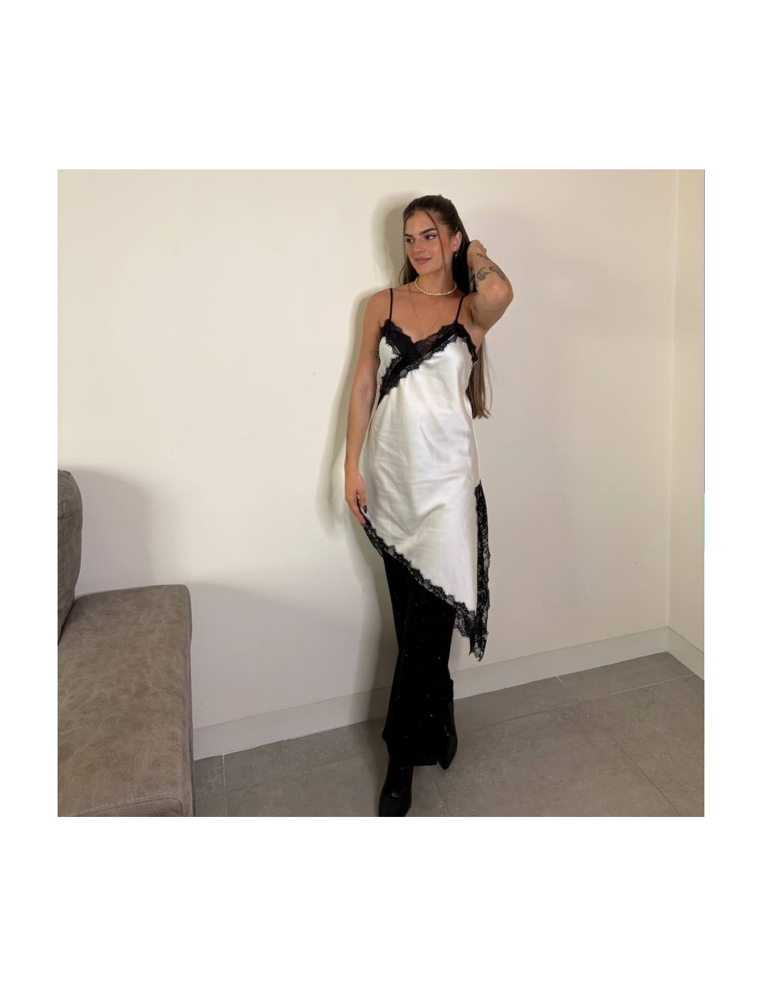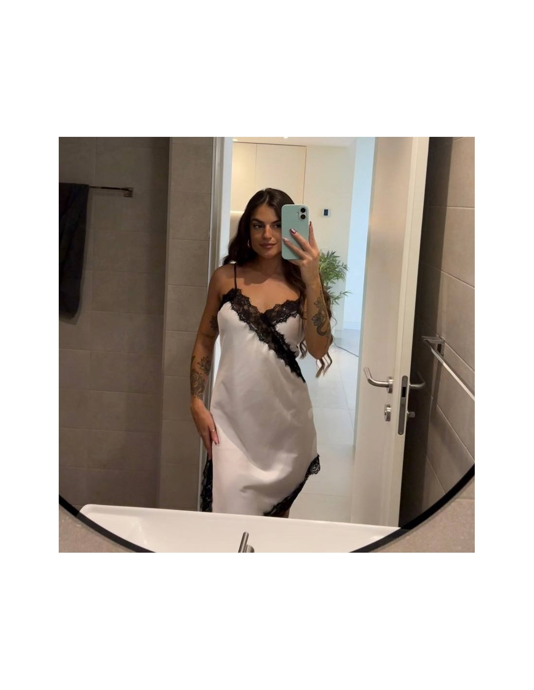 Vestido lencero midi. Tirantas finas a tono. Escote V con detalle encaje. Fluido. Talla única