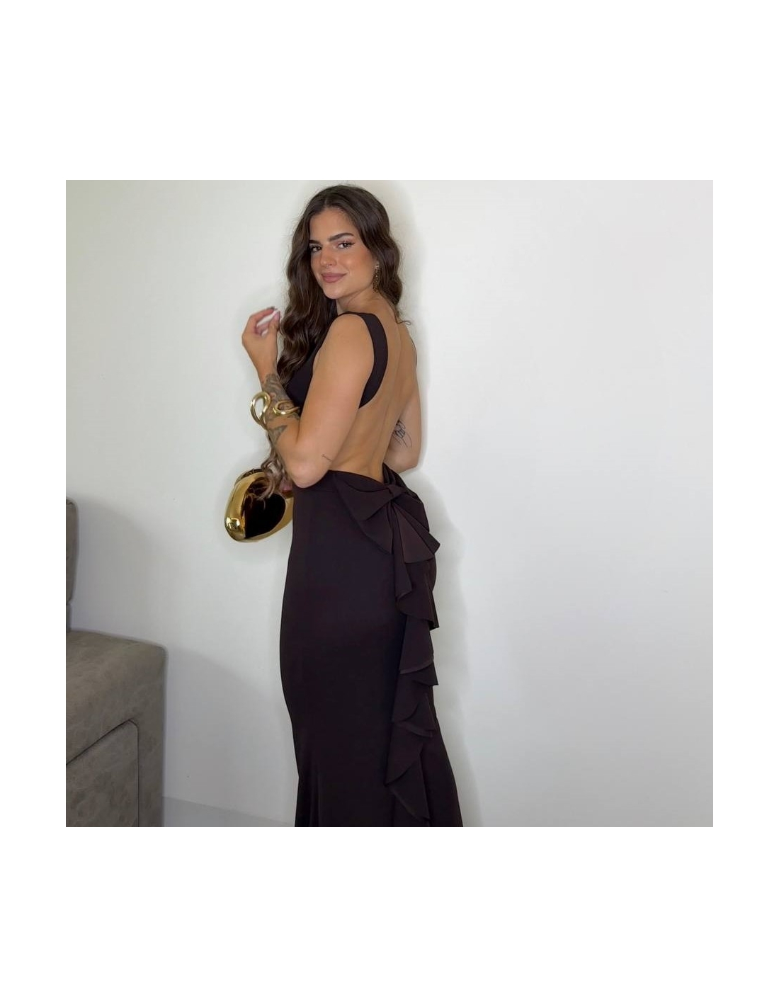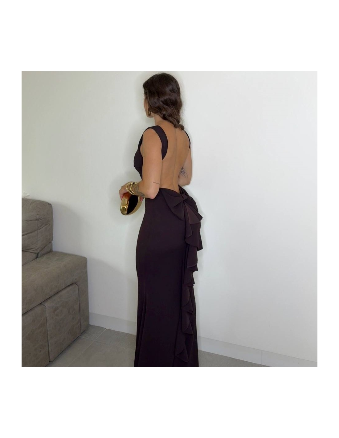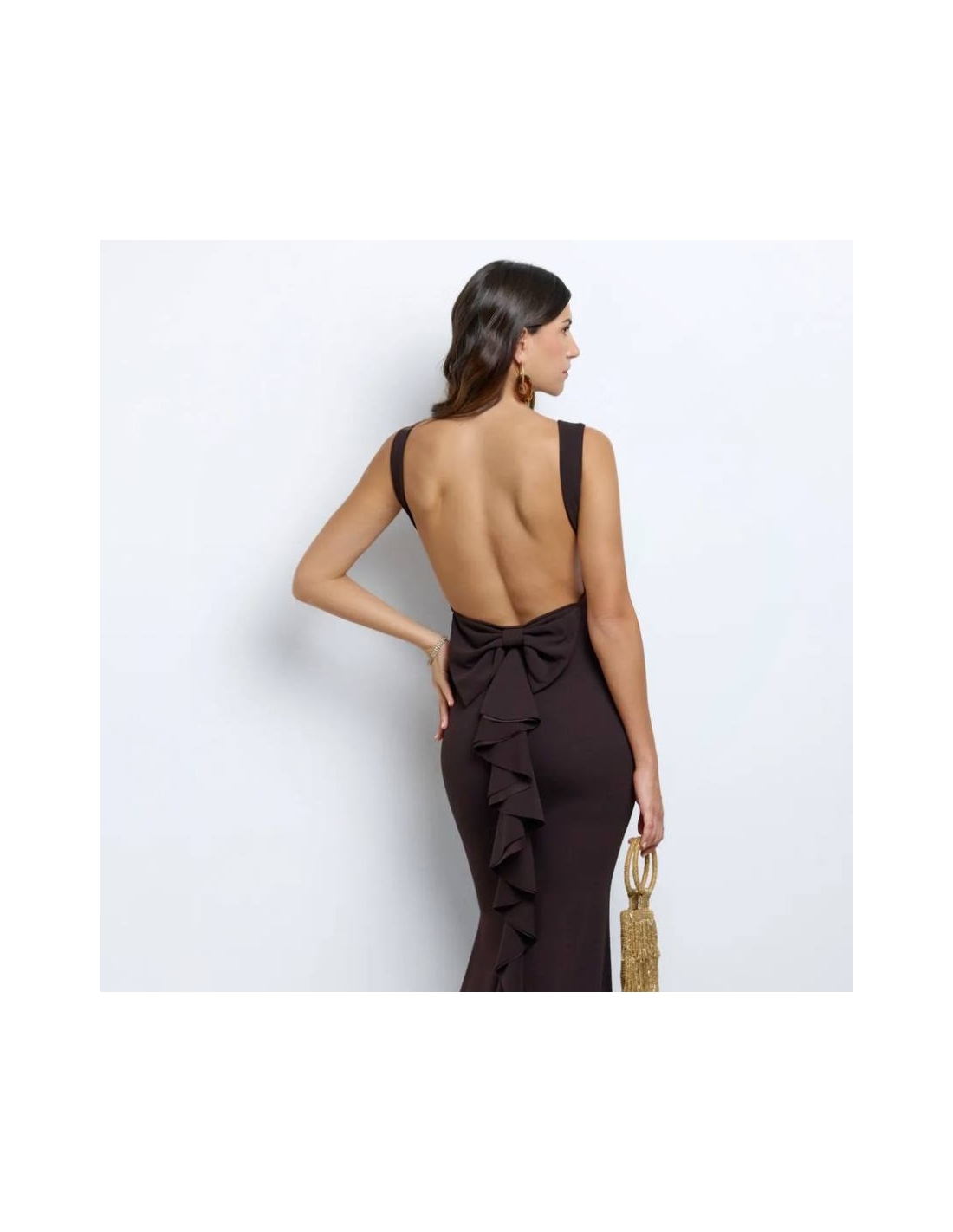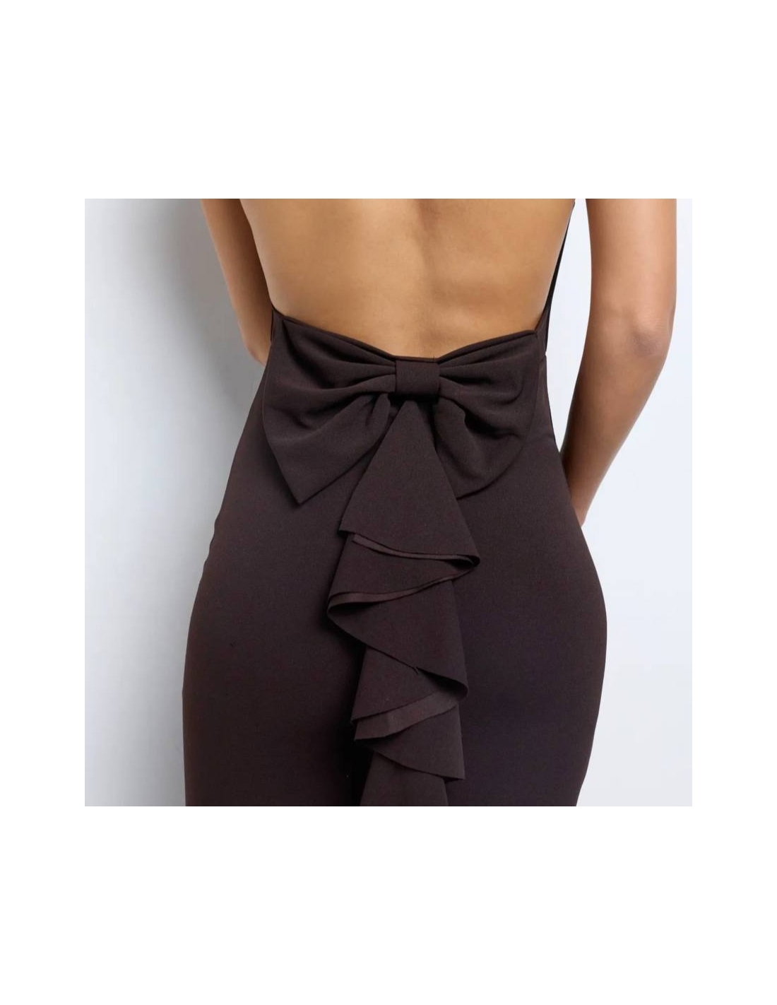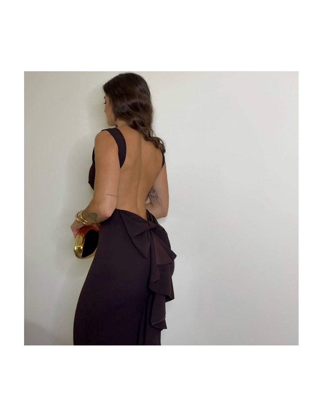 Vestido largo sirena lazo trasero espalda descubierta. Cascos incorporados. Doble tejido. Talla única.