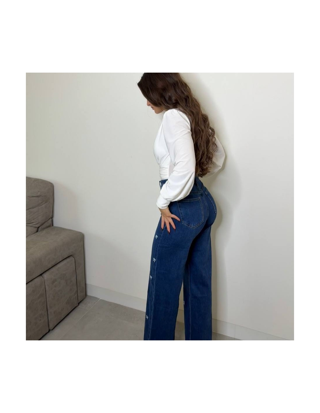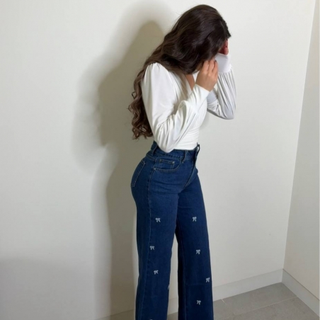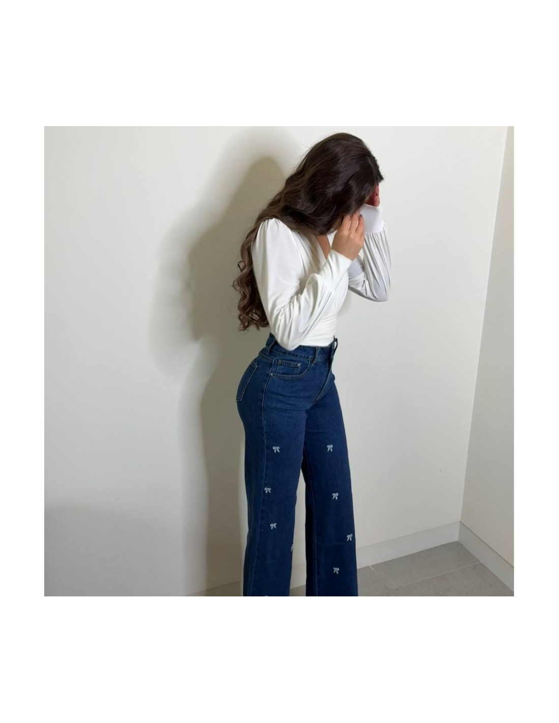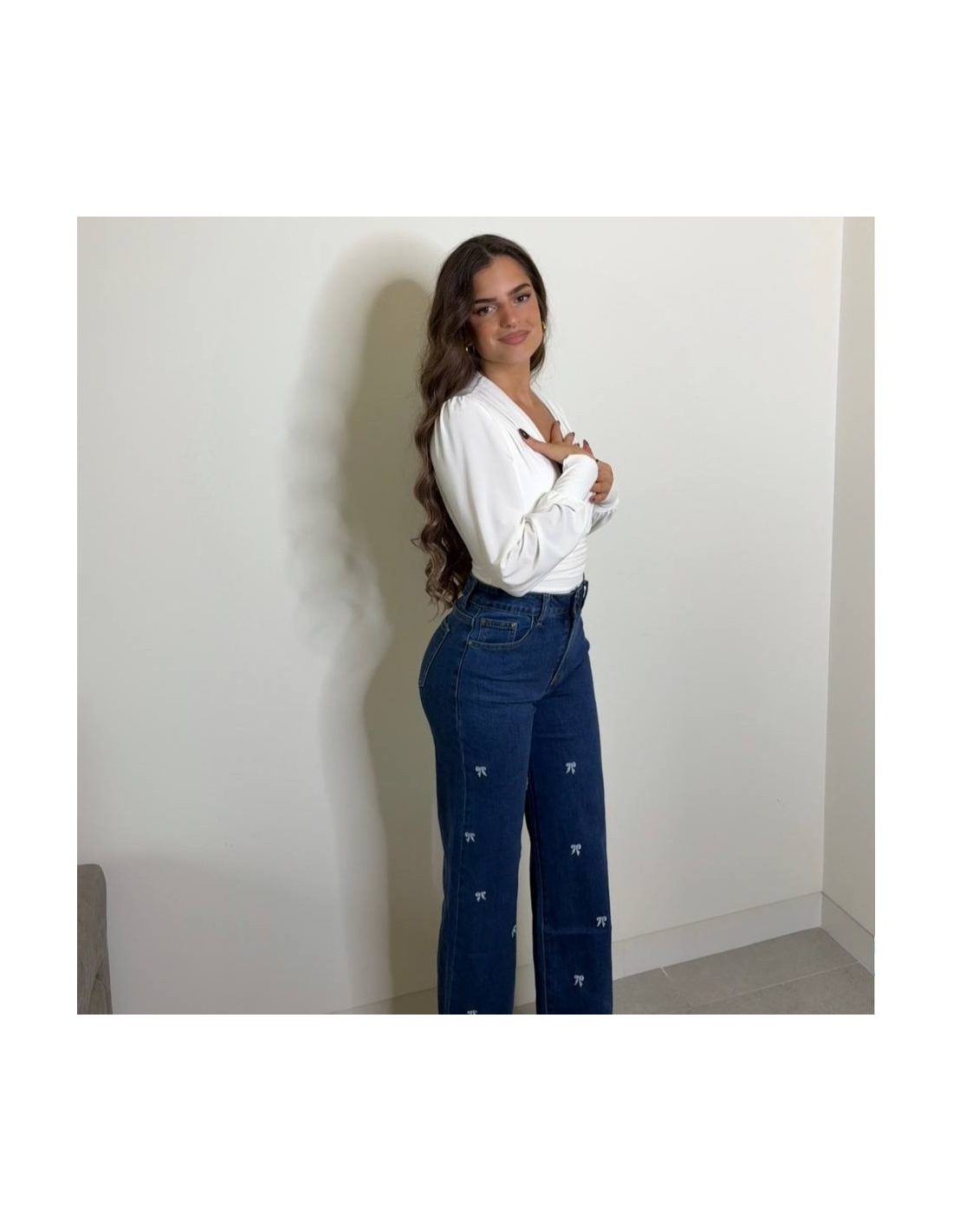 Body escote V blanco. De manga larga. Cierre en bajo. De manga larga fluido. Talla única