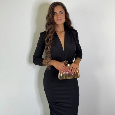 Vestido Selene largo. Detalle joya dorada en parte delantera. Tejido doble licra elástico. Talla única.