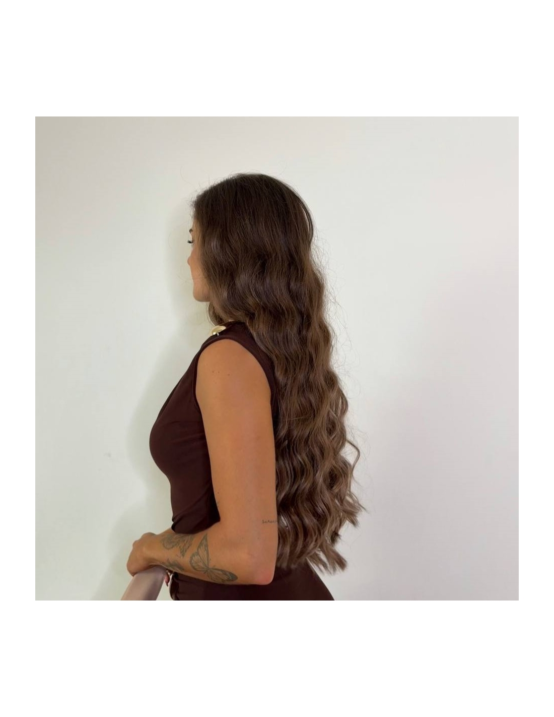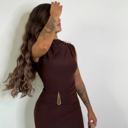 Vestido gota corto en tono choco. Fruncido en parte delantera. Talla única
