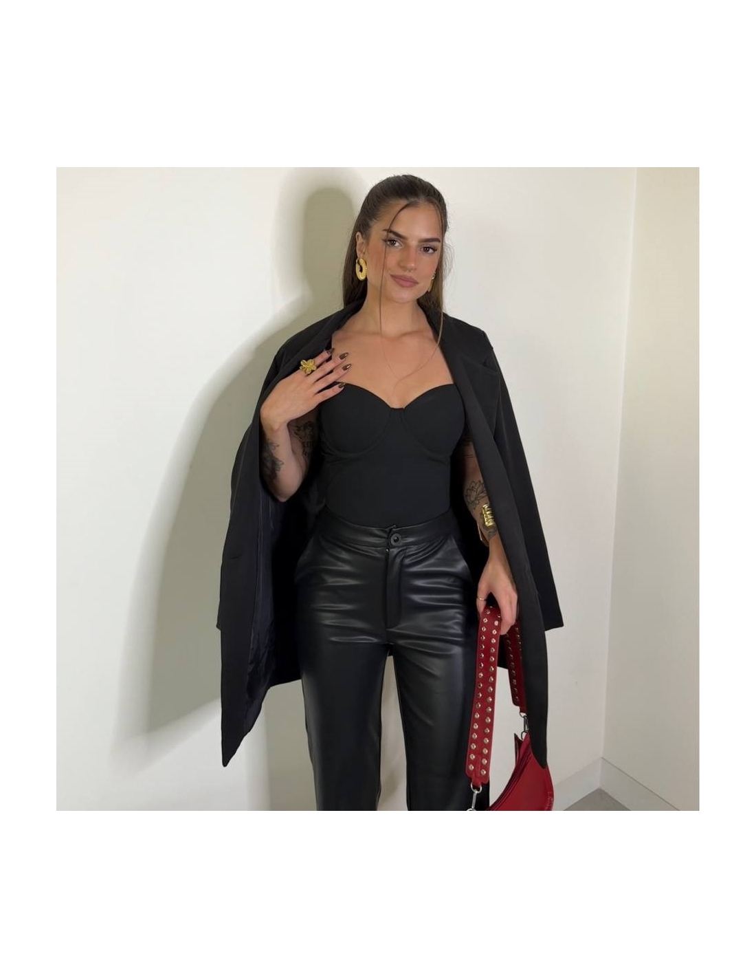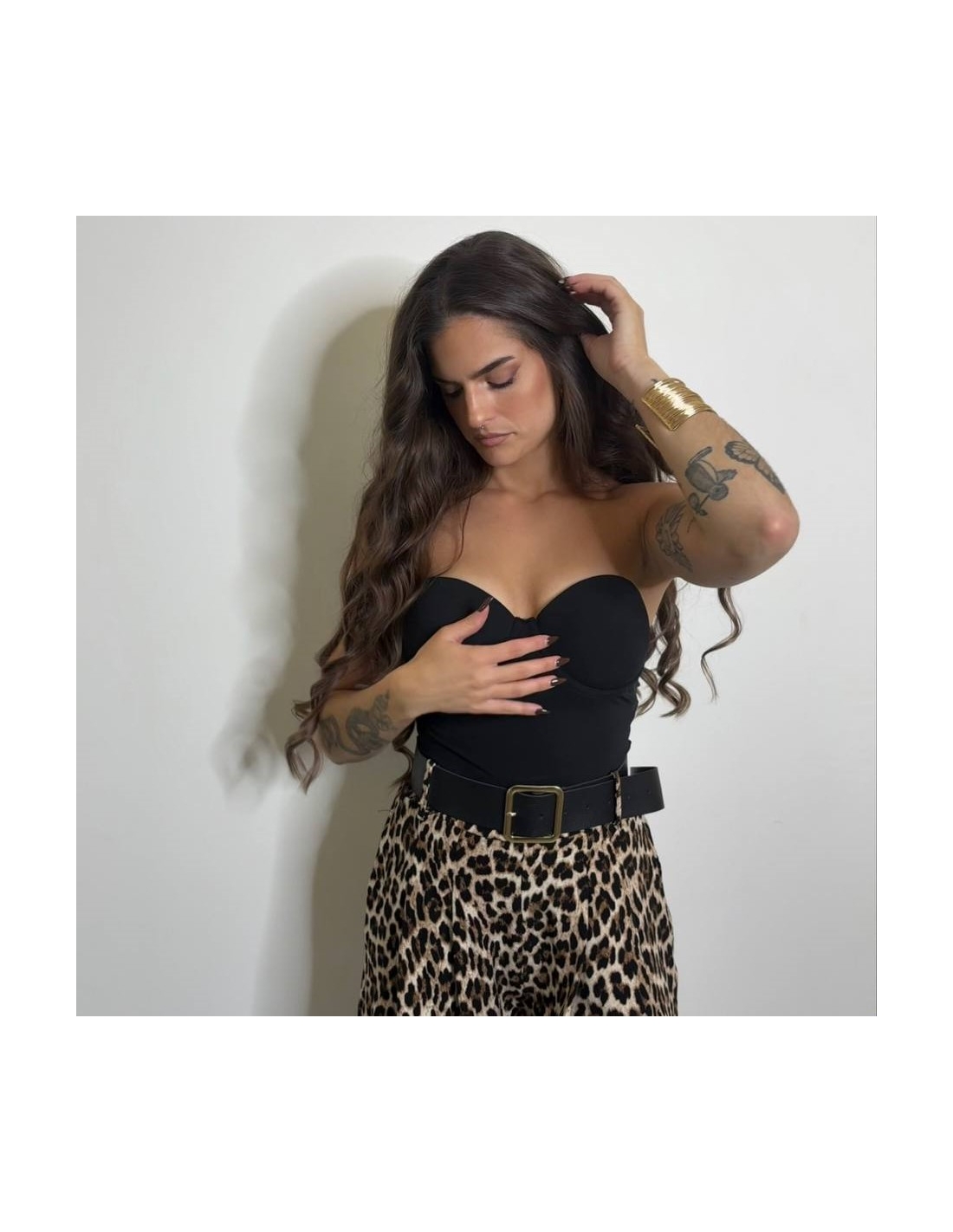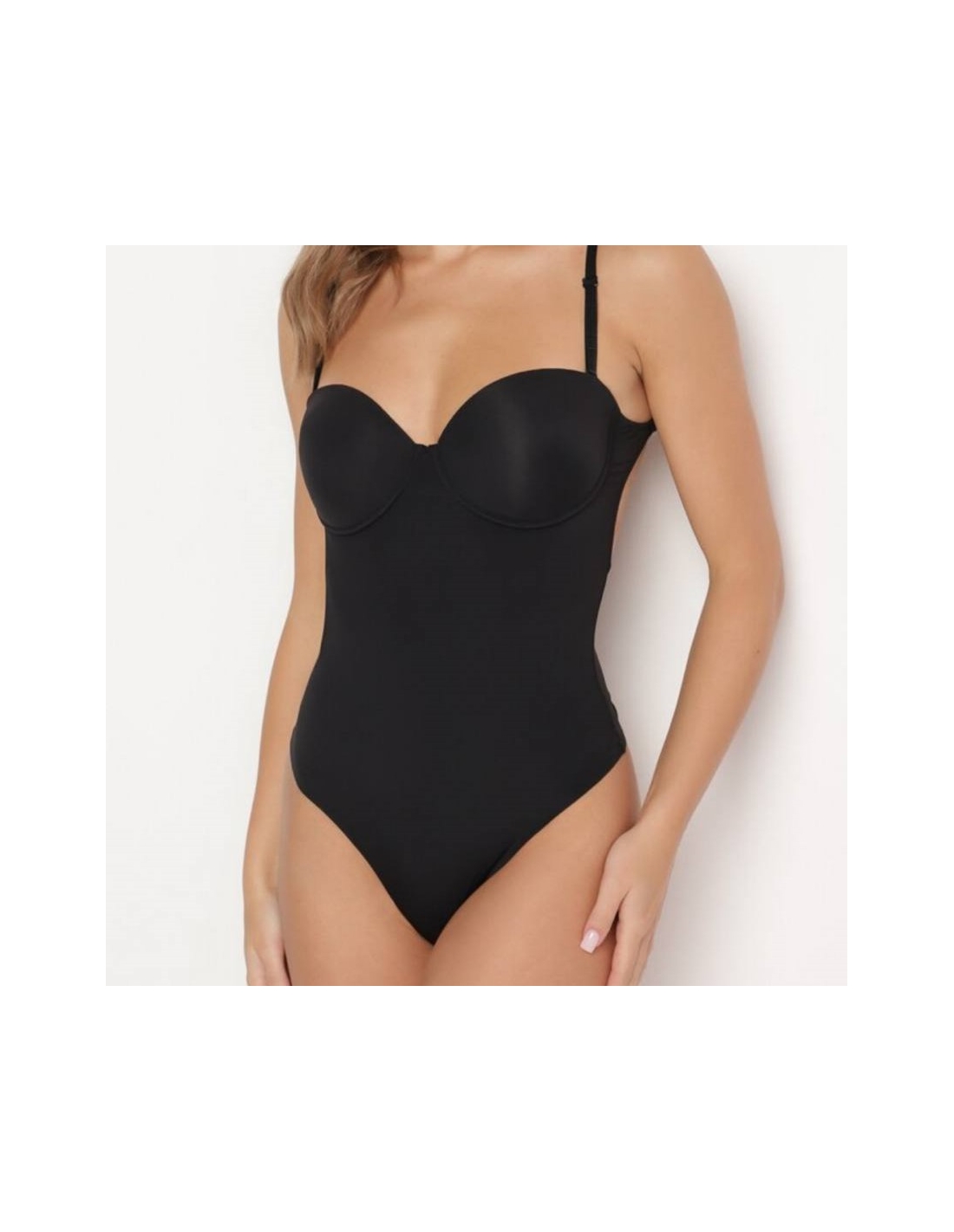 Body basic escote de corazón en tono negro. Efecto faja. Push up. Cierre en bajo. Con tirantas extraíbles regulables a tono. Elástico.