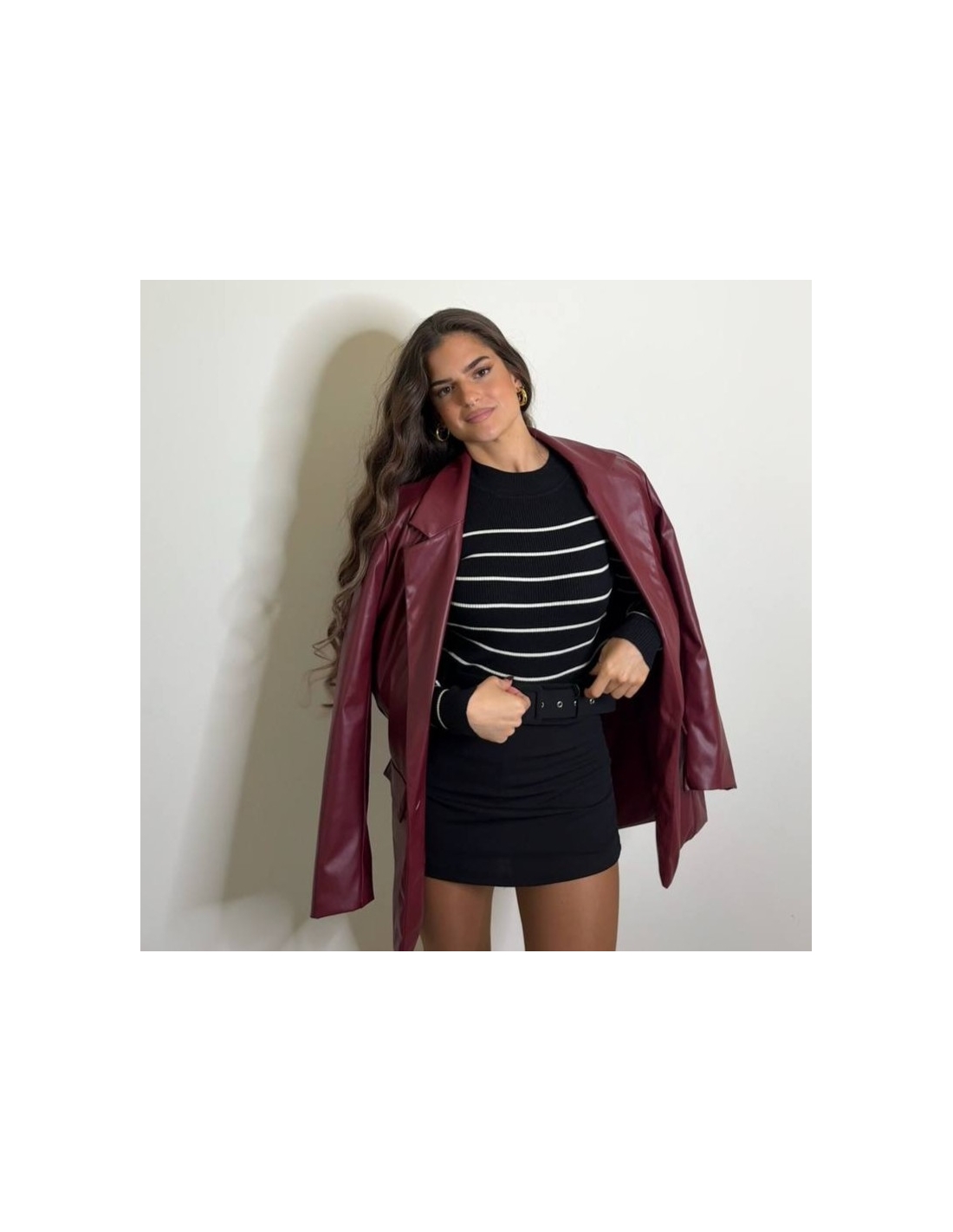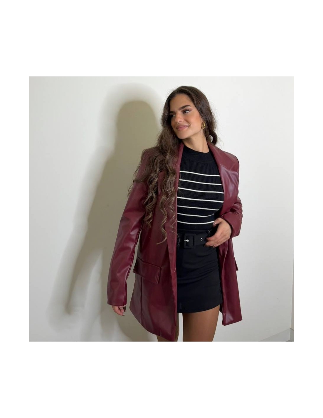 Blazer larga en tono vino efecto piel. Cierre delantero abotonado. Cuello de solapa. Con forro interior a tono. Talla única