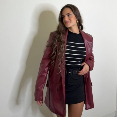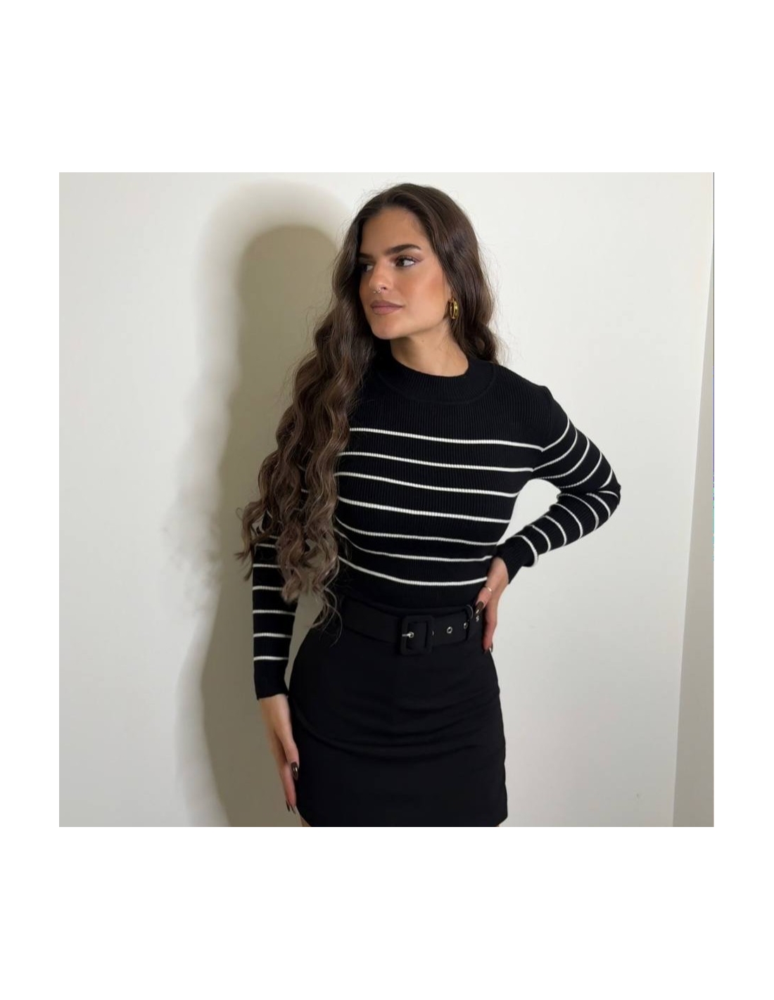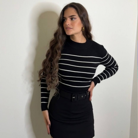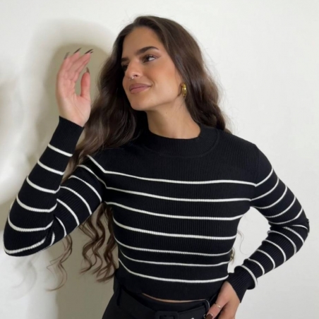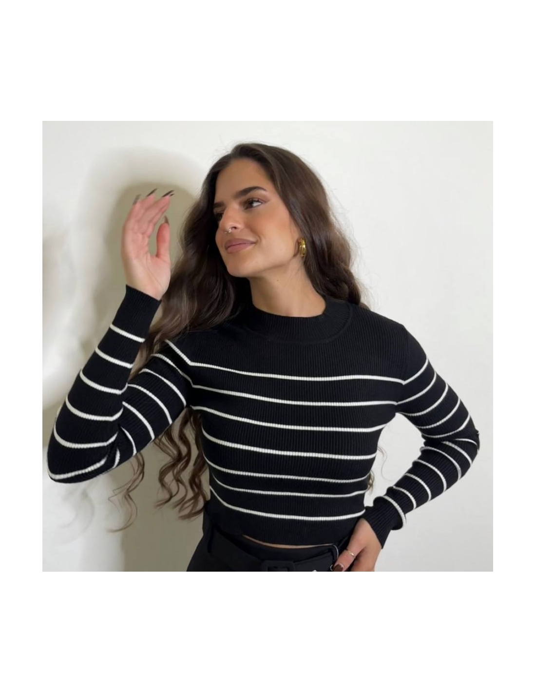 Jersey cortito ajustado en tono negro con rayas en blanco. De manga larga. Elástico. Talla única