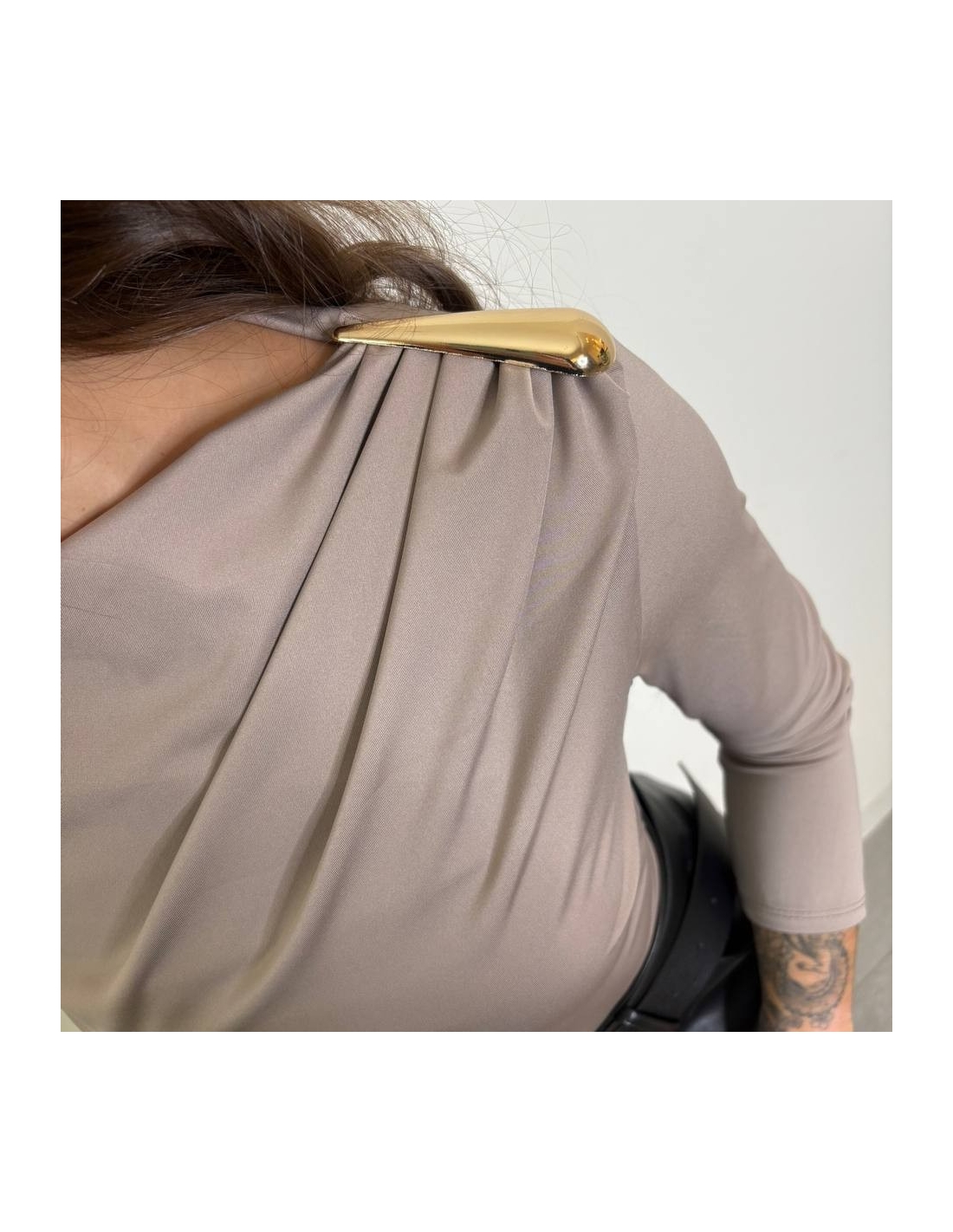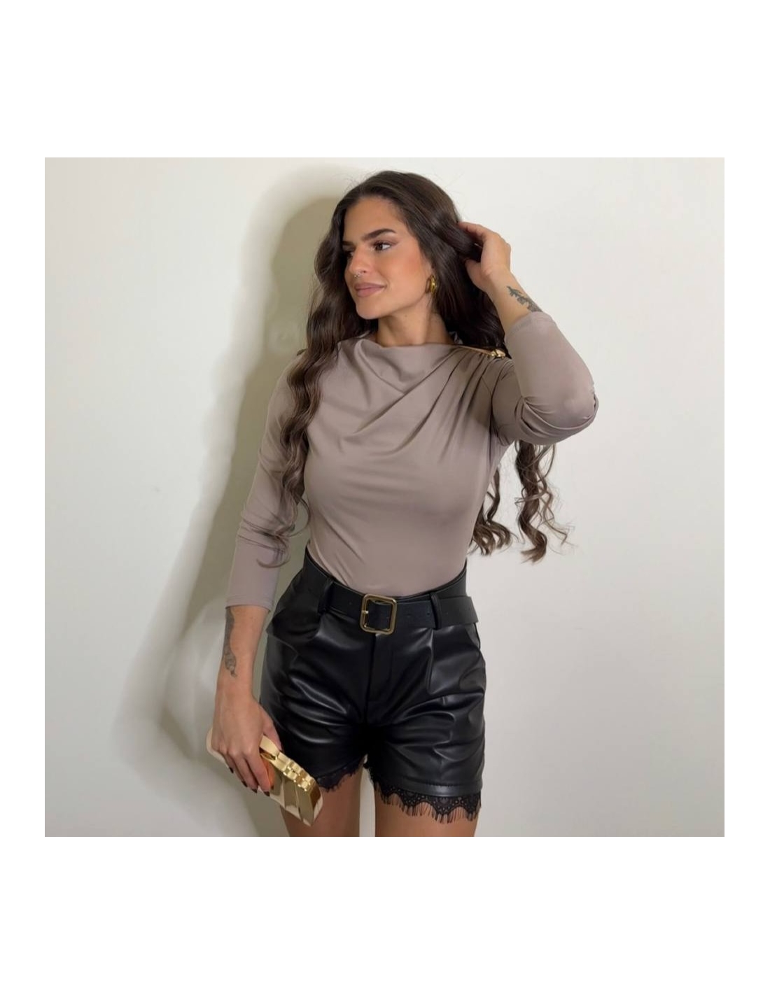 Body gota en tono taupé. Cierre en bajo. De manga larga. Fruncido parte delantera. Talla única