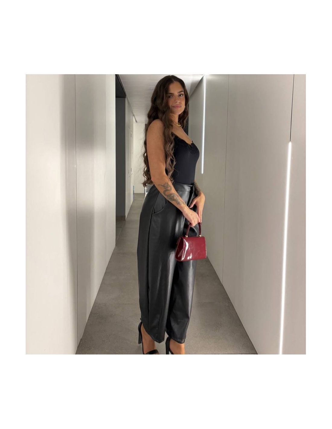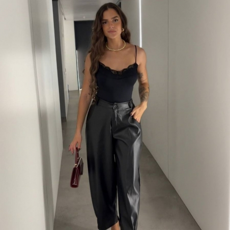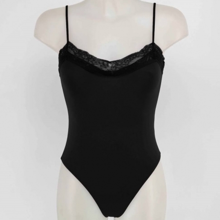 Body de tiranta fina elástica. Tejido de licra y borde escote de encaje. Talla única.