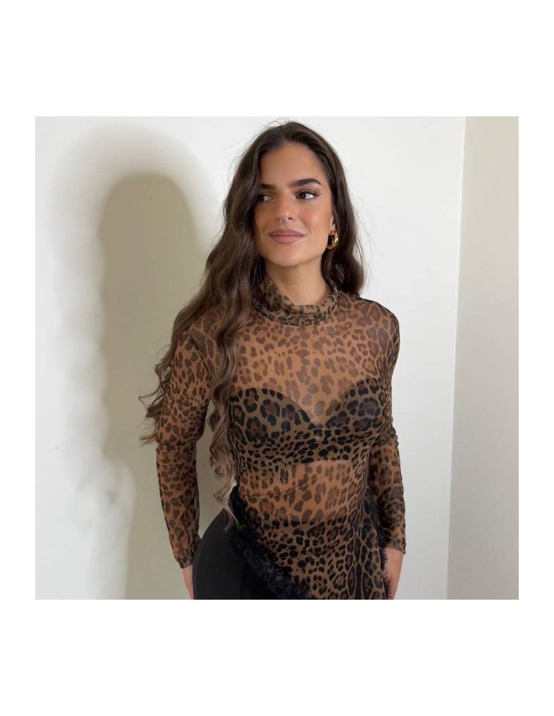 Top tul animal print asimétrico en bajo de encaje. talla única.