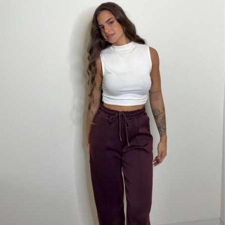 Pantalón deportivo de tiro alto. Cintura elástica. Fluido. Talla única