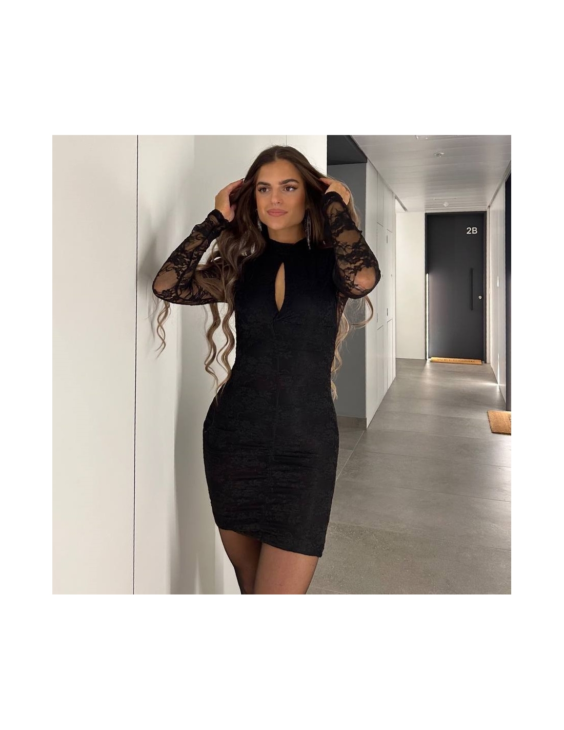 Vestido encaje abertura en tono negro. Forro interior. Fruncido. Talla única.