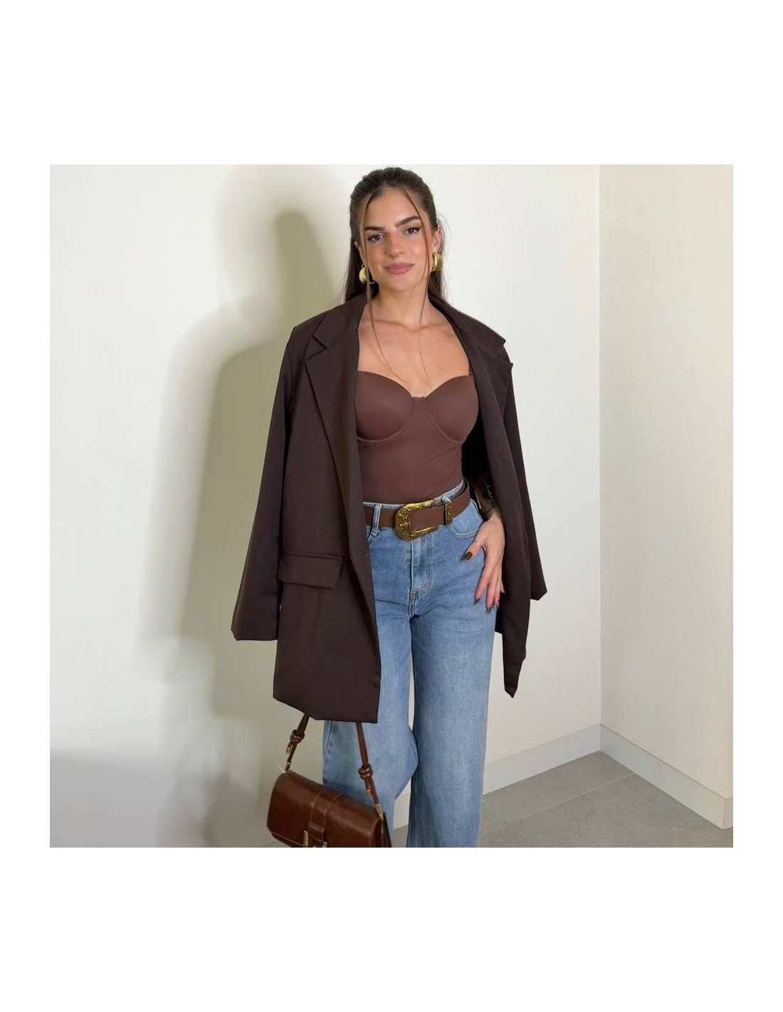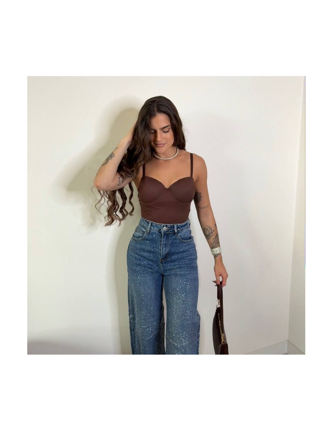 Body basic escote de corazón en tono choco. Efecto faja. Push up. Cierre en bajo. Con tirantas extraíbles regulables a tono. Elástico.