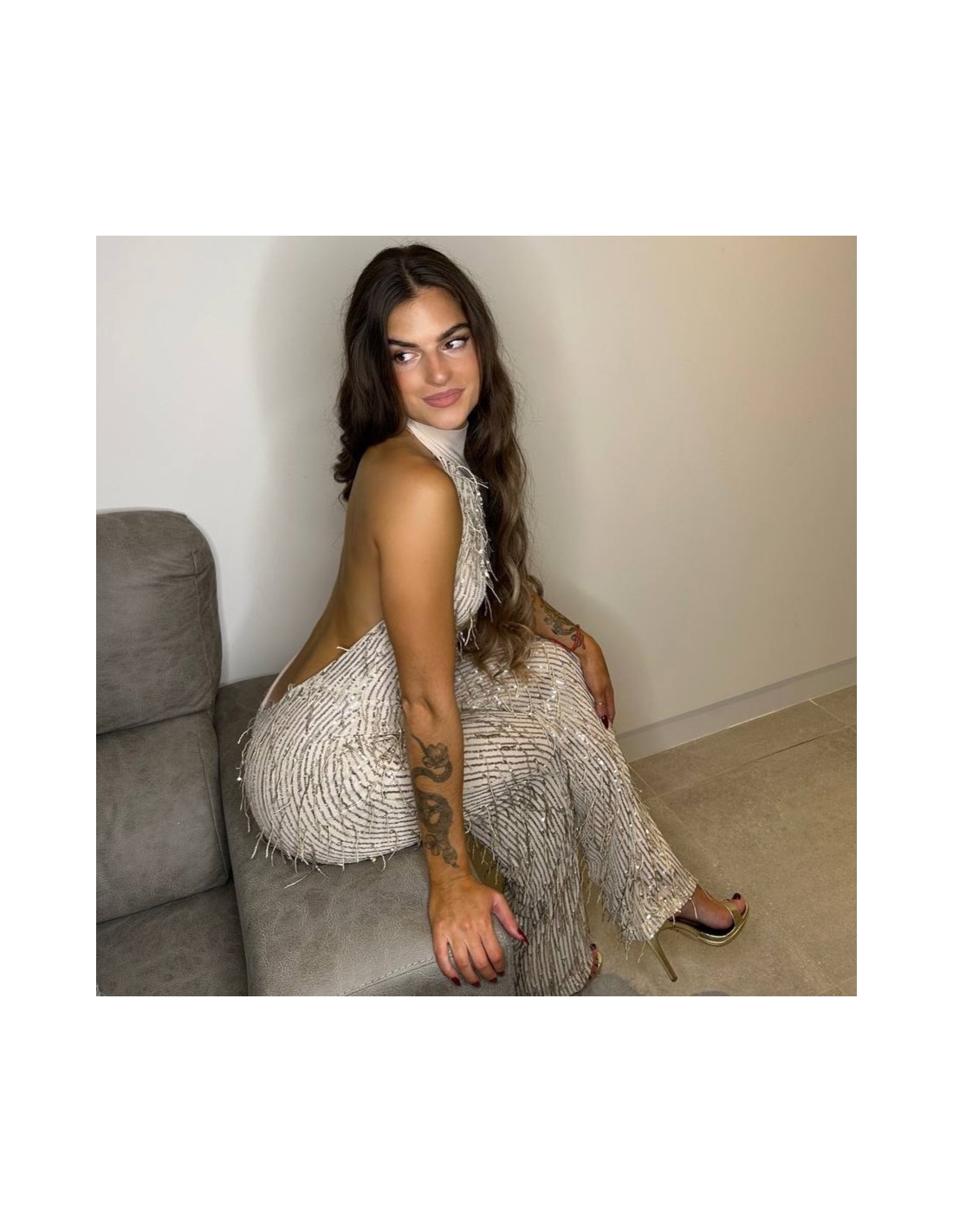 Mono flecos largo de lentejuelas. De campana. Regulable con lazada al cuello. Con forro a tono. Talla única