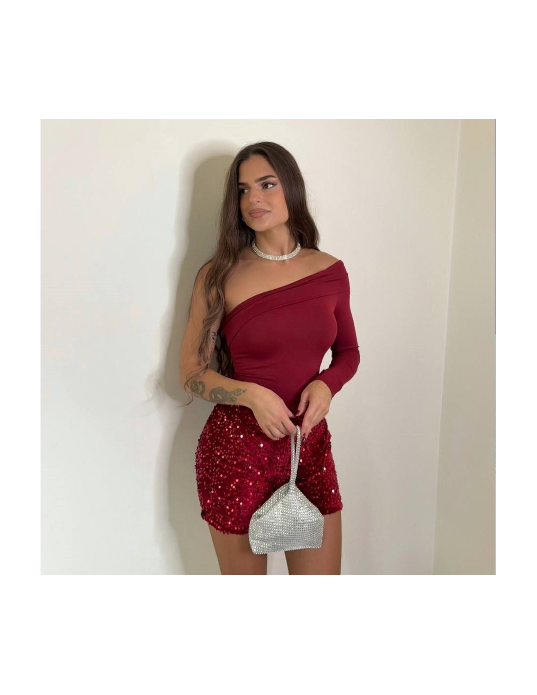 Body asimétrico en tono vino. Cierre en bajo. Talla única
