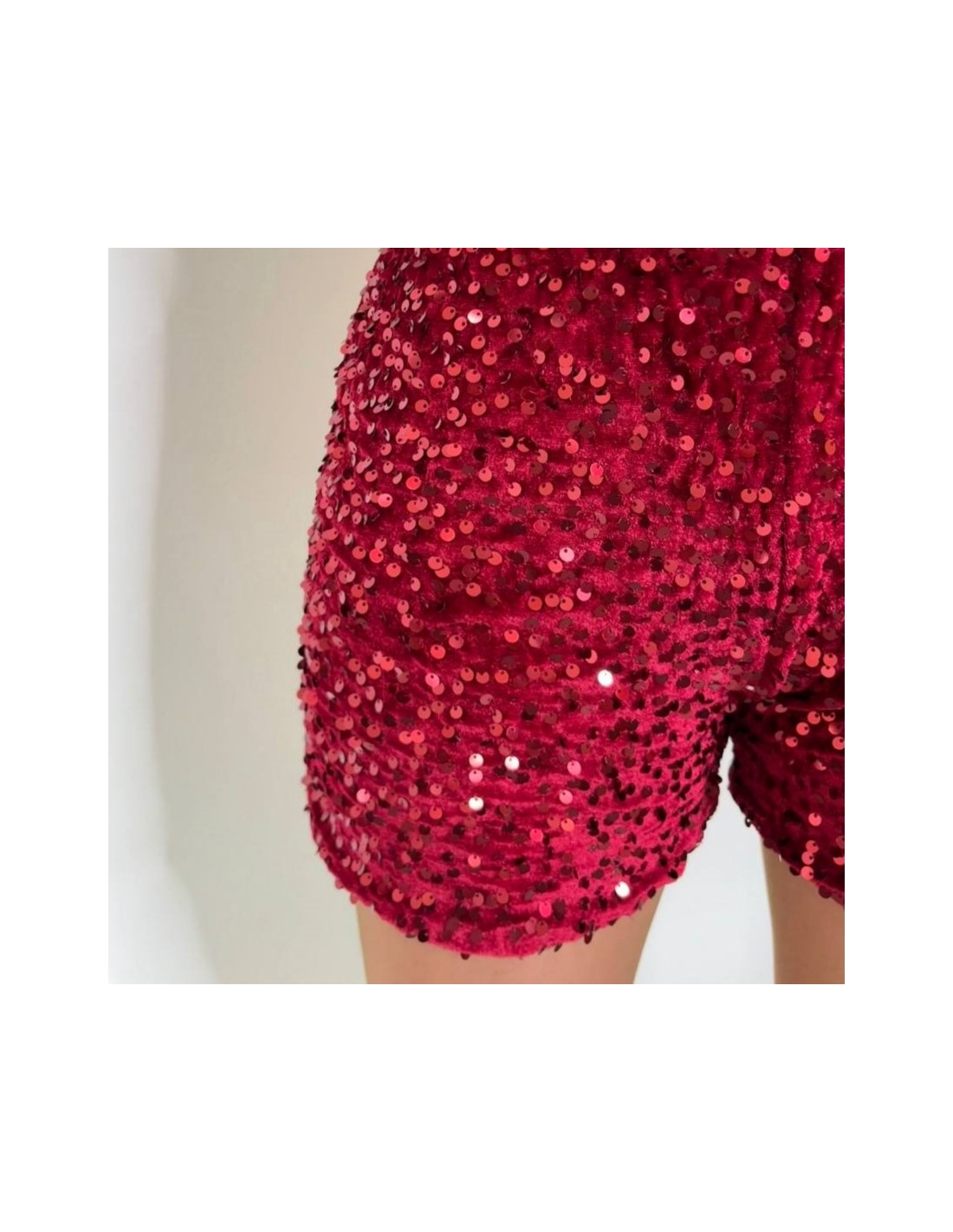 Pantalón corto de lentejuelas de tiro alto. Cintura elástica. Con forro interior a tono. Talla única