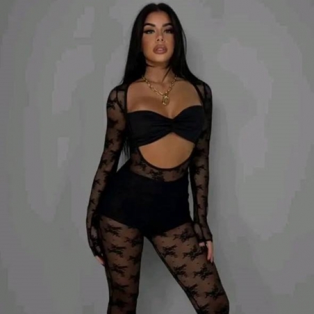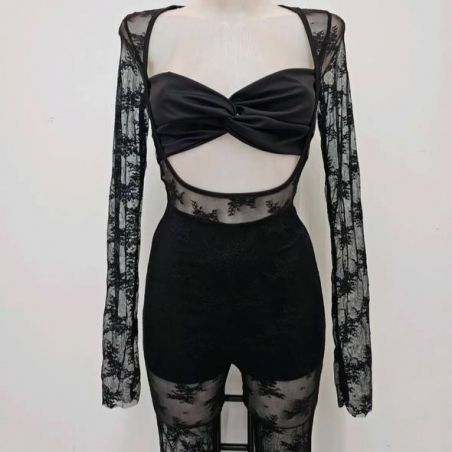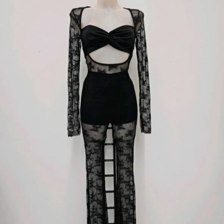 Mono ajustado largo de enaje. Abertura en escote. Banda con nudo. Talla única