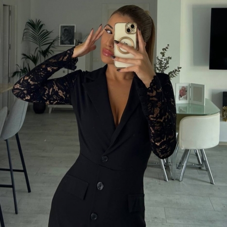 Mono corto tipo blazer con mangas de encaje. Talla única.