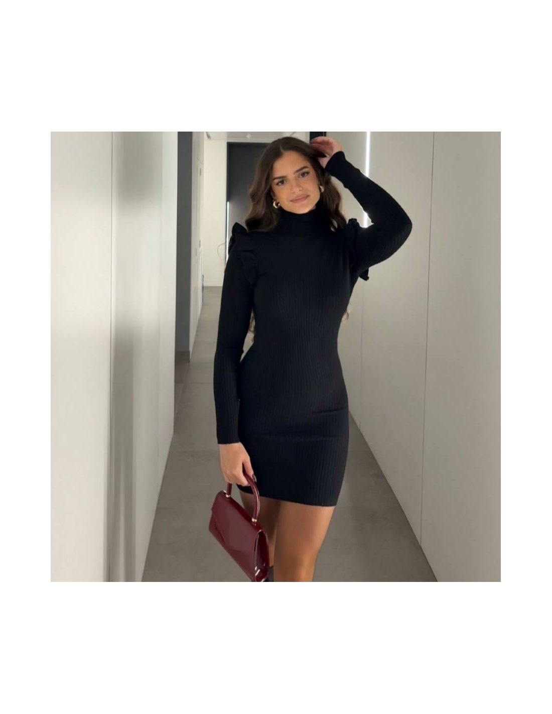Vestido punto con volantitos en hombro. De manga larga. Talla única.