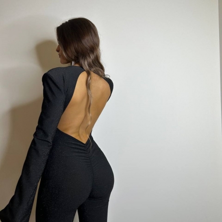 Mono hombreras lurex. Terminación de la manga acampanada. Espalda descubierta. Talla única.