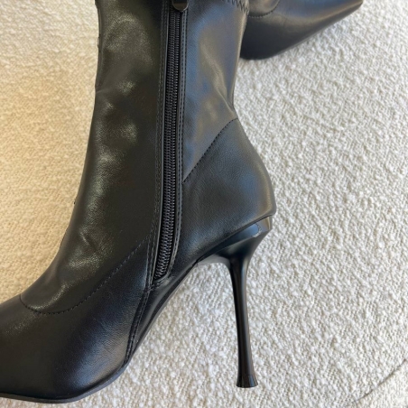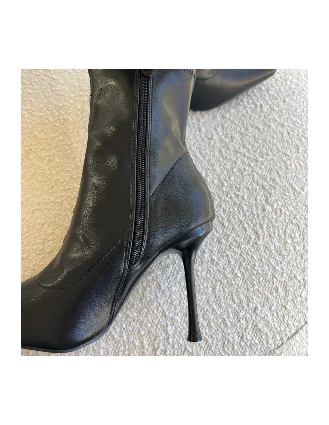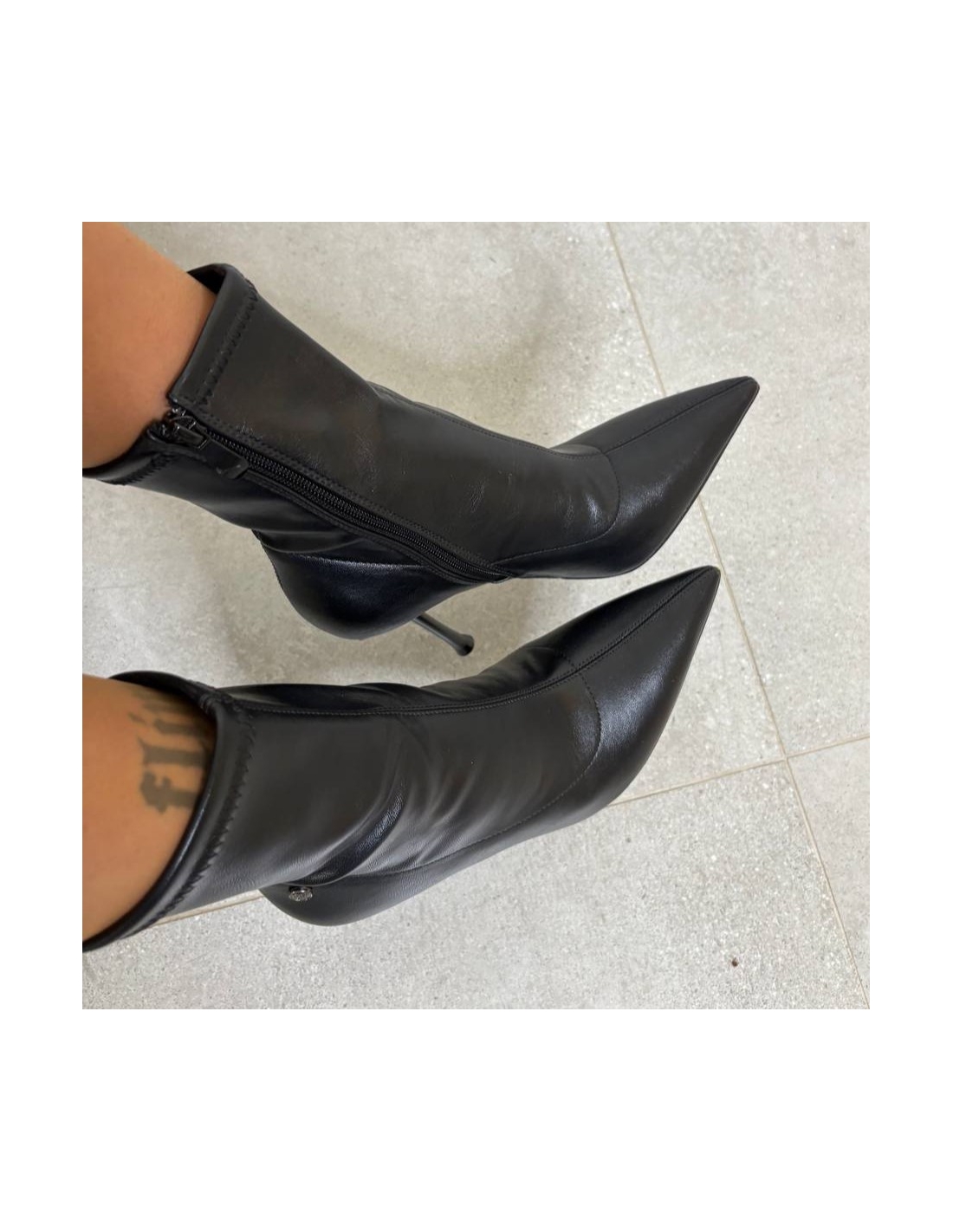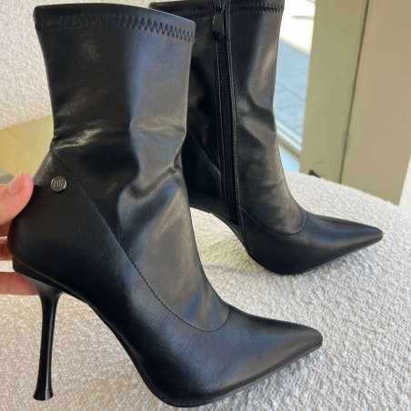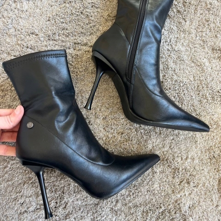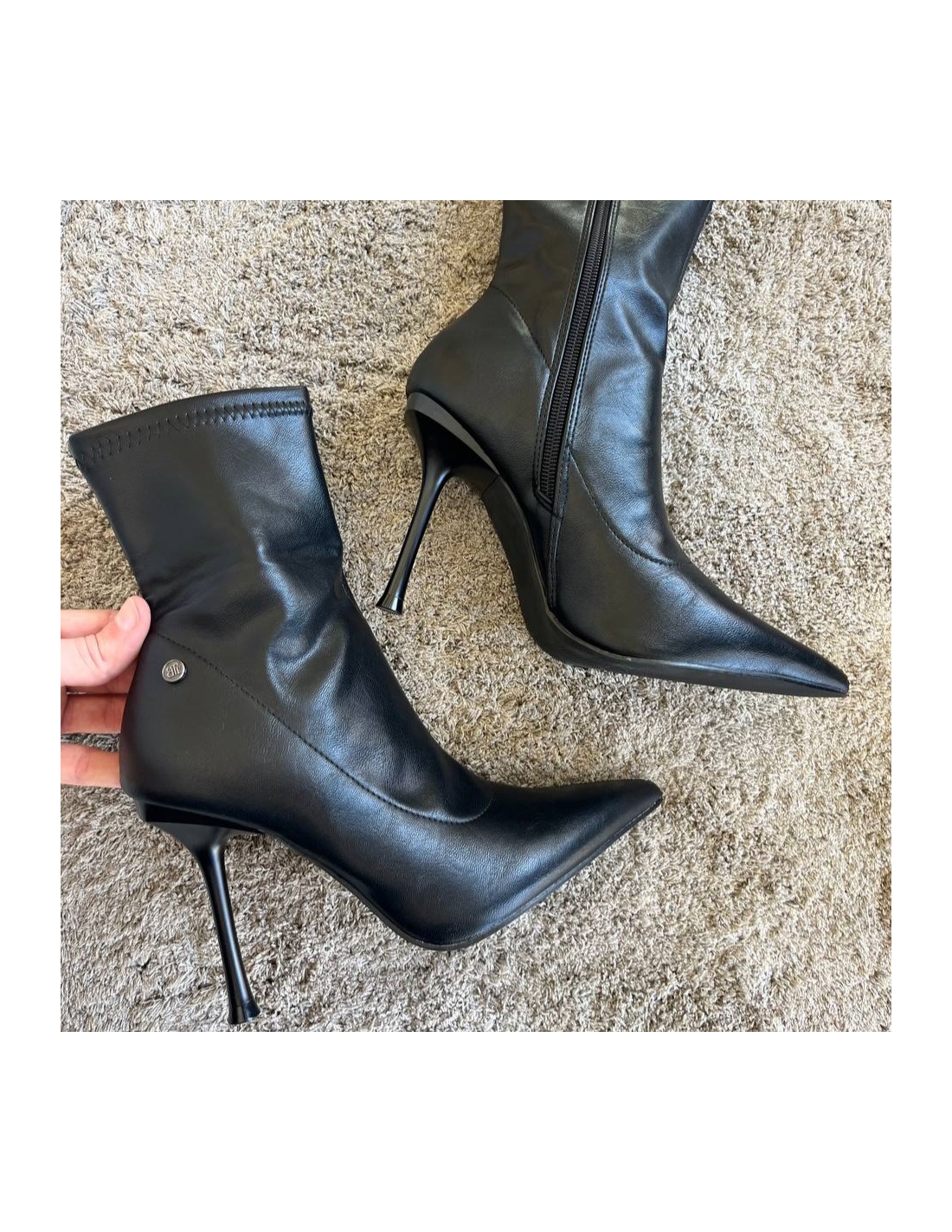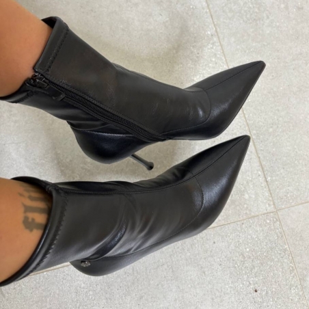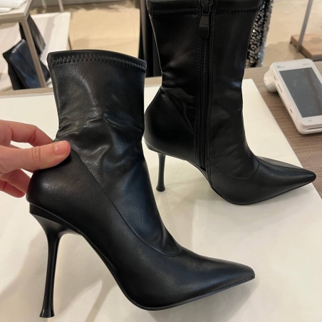 Botín calcetín de tacón fino. Material efecto piel. Cierre lateral con cremallera. Altura tacón 10cm.