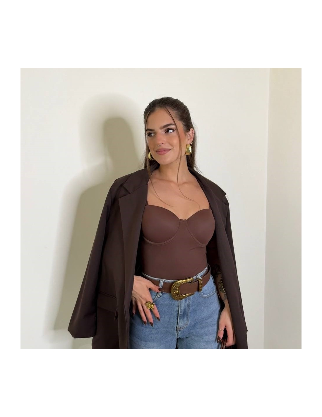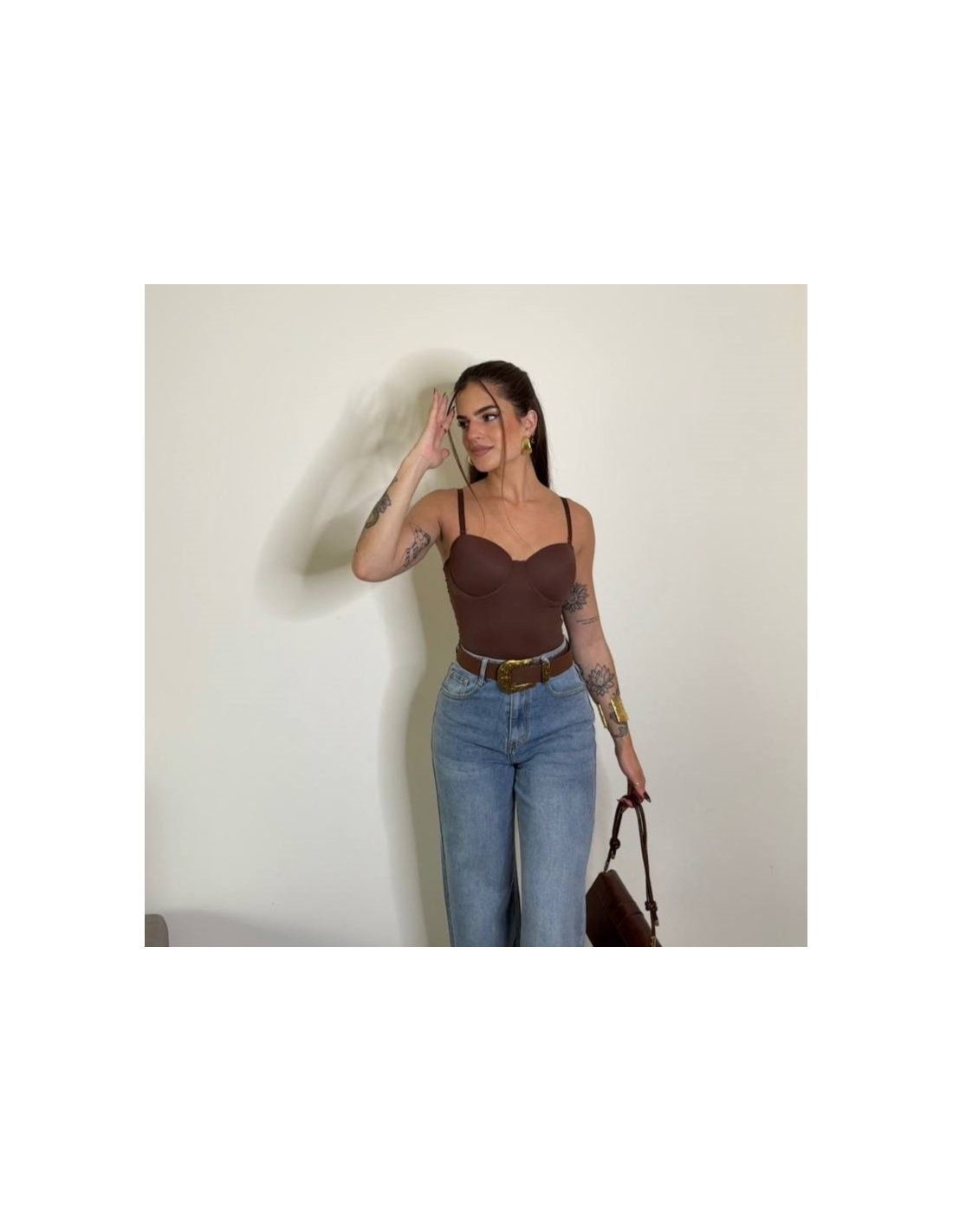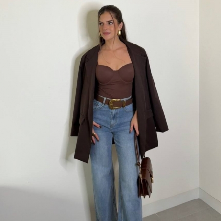 Body reductor ajustado con tirantas regulables a tono. Cierre en bajo. Casco incorporado.