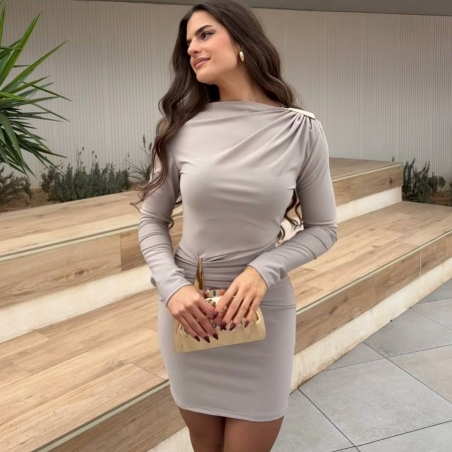 Vestido lágrima dorada. Fruncido delantero. De manga larga. Talla única.