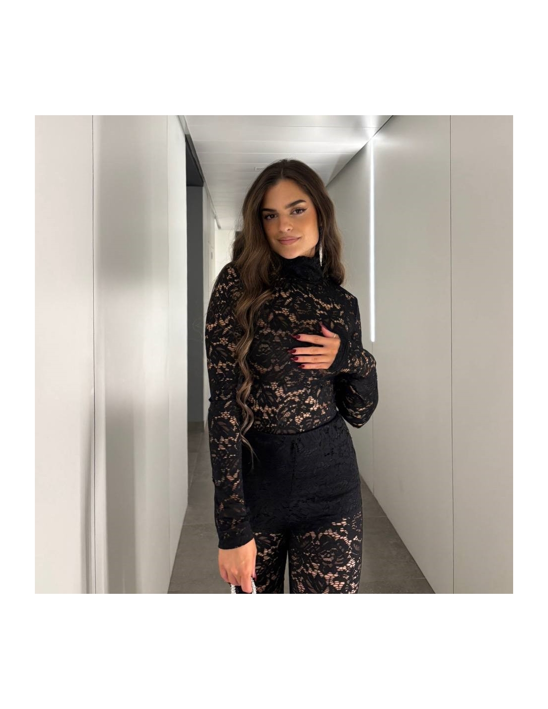 Conjunto encaje de top más pantalón de encaje a tono. Con forro mini interior a tono. Talla única