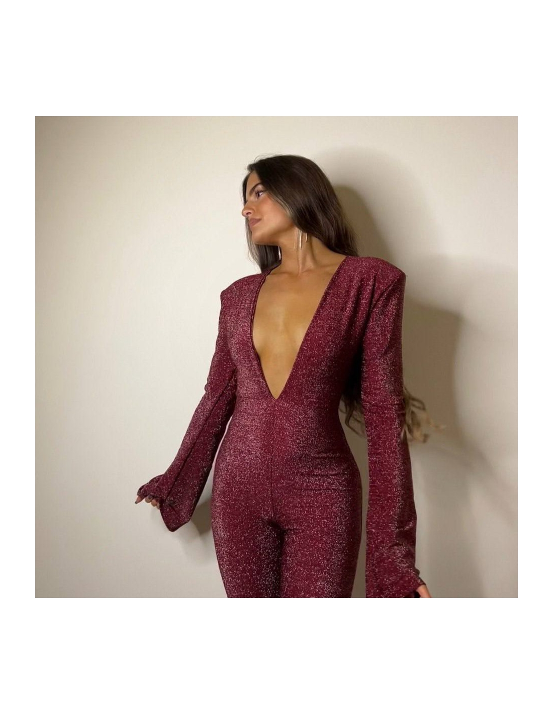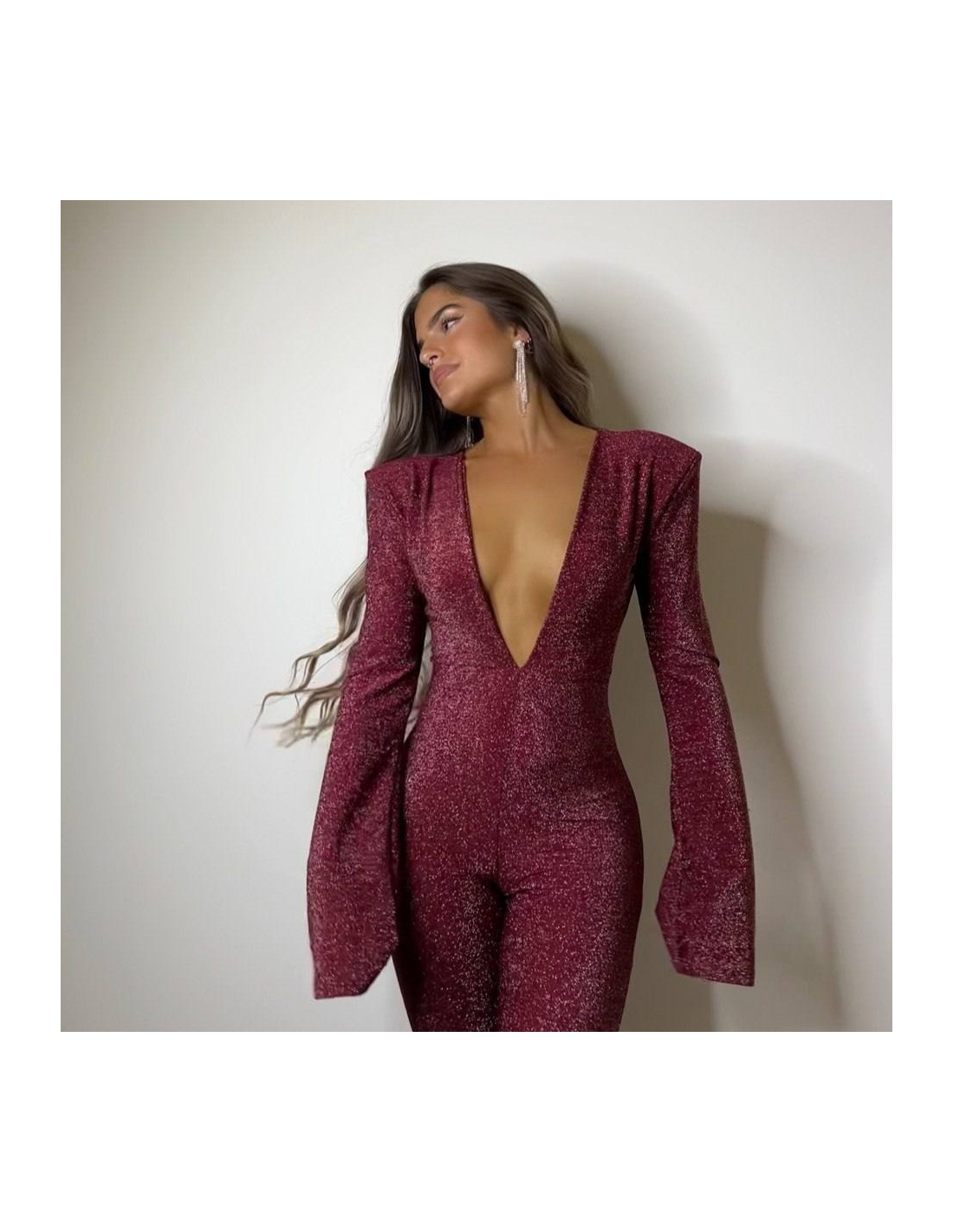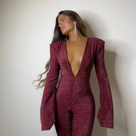Mono hombreras lurex. Terminación de la manga acampanada. Espalda descubierta. Talla única.