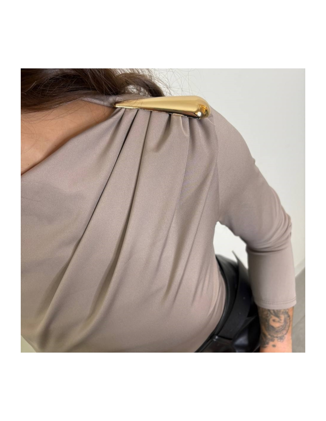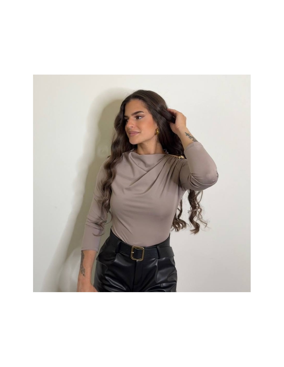 Body lágrima dorada de manga larga. Fruncido. Cierre en bajo. Talla única