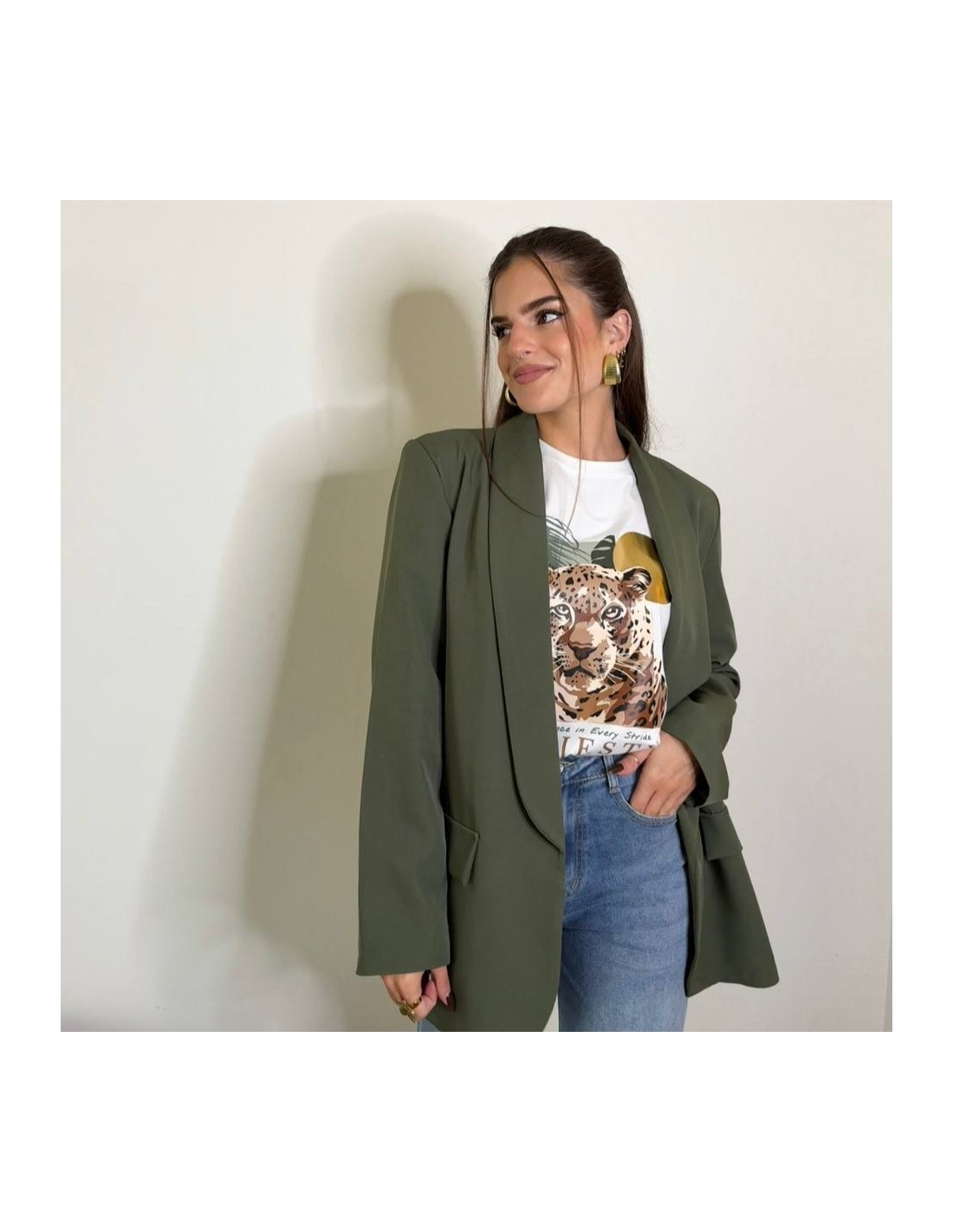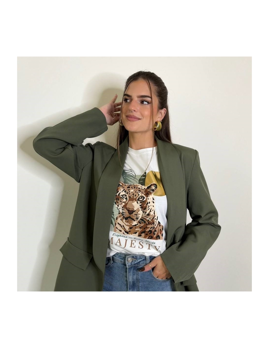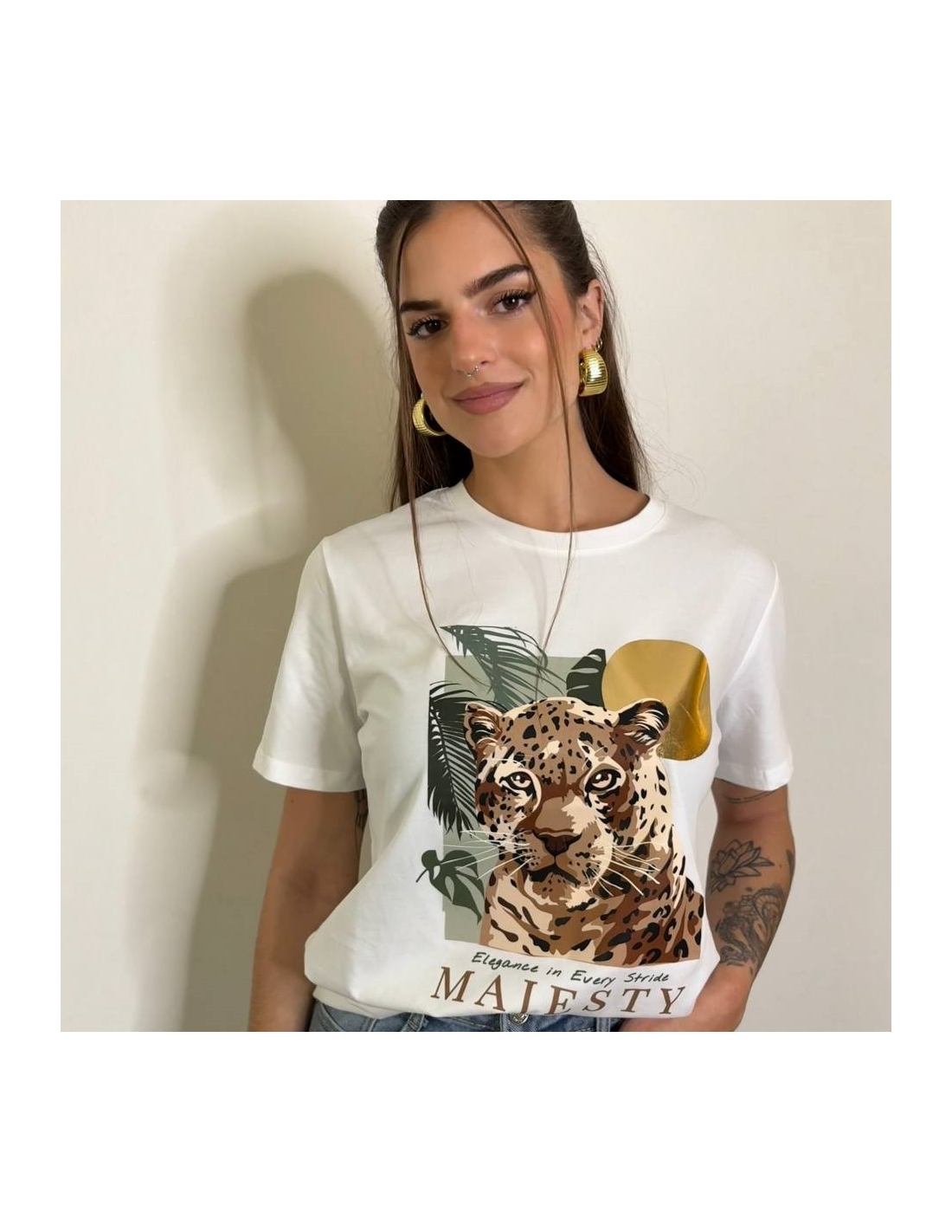Maxi camiseta blanca estampada. Cuello redondo. De manga larga. Talla única