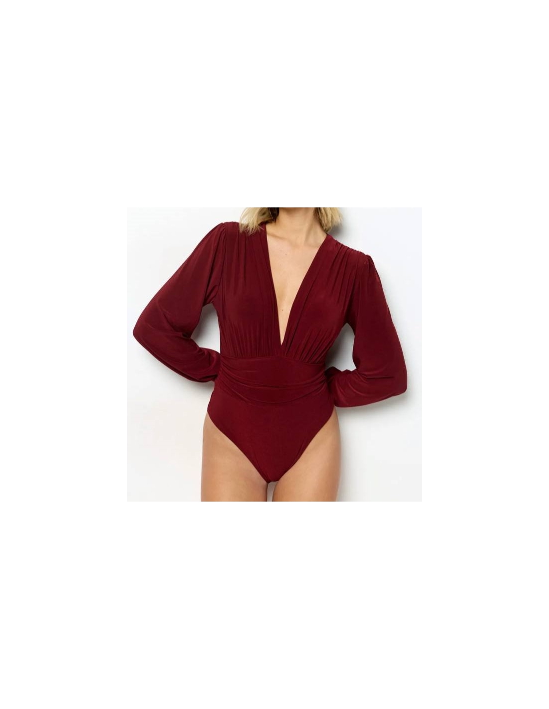 Body escote V marino de manga larga. Casco incorporado. De manga larga. Elástico. Talla única