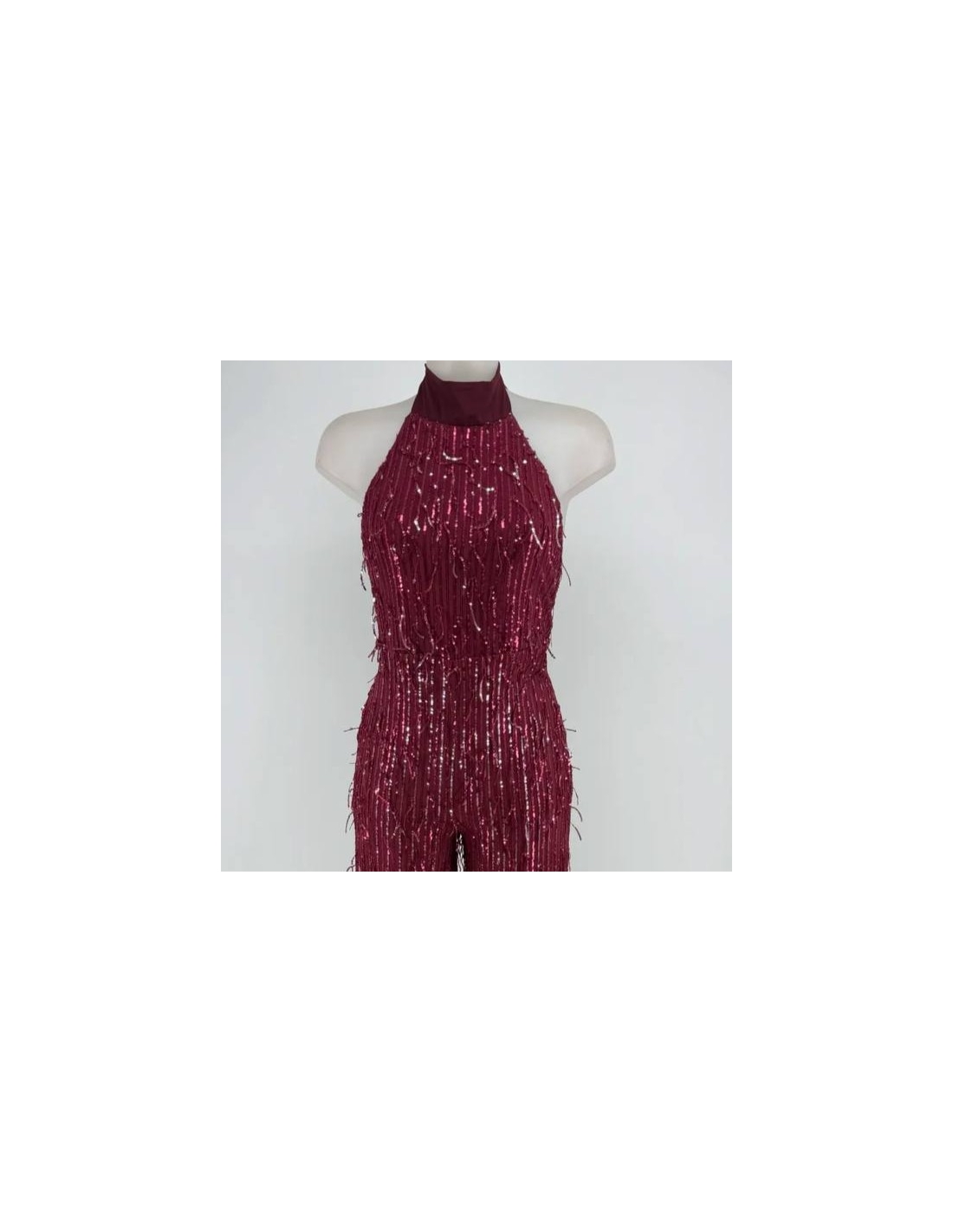 Mono flecos largo de lentejuelas. De campana. Regulable con lazada al cuello. Con forro a tono. Talla única