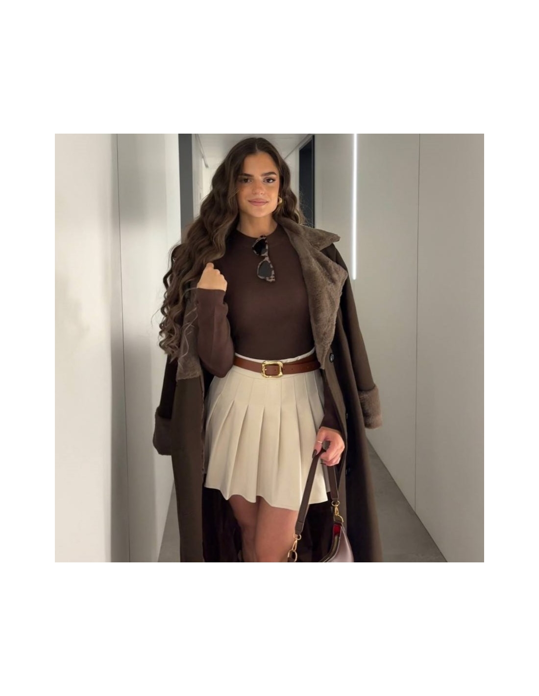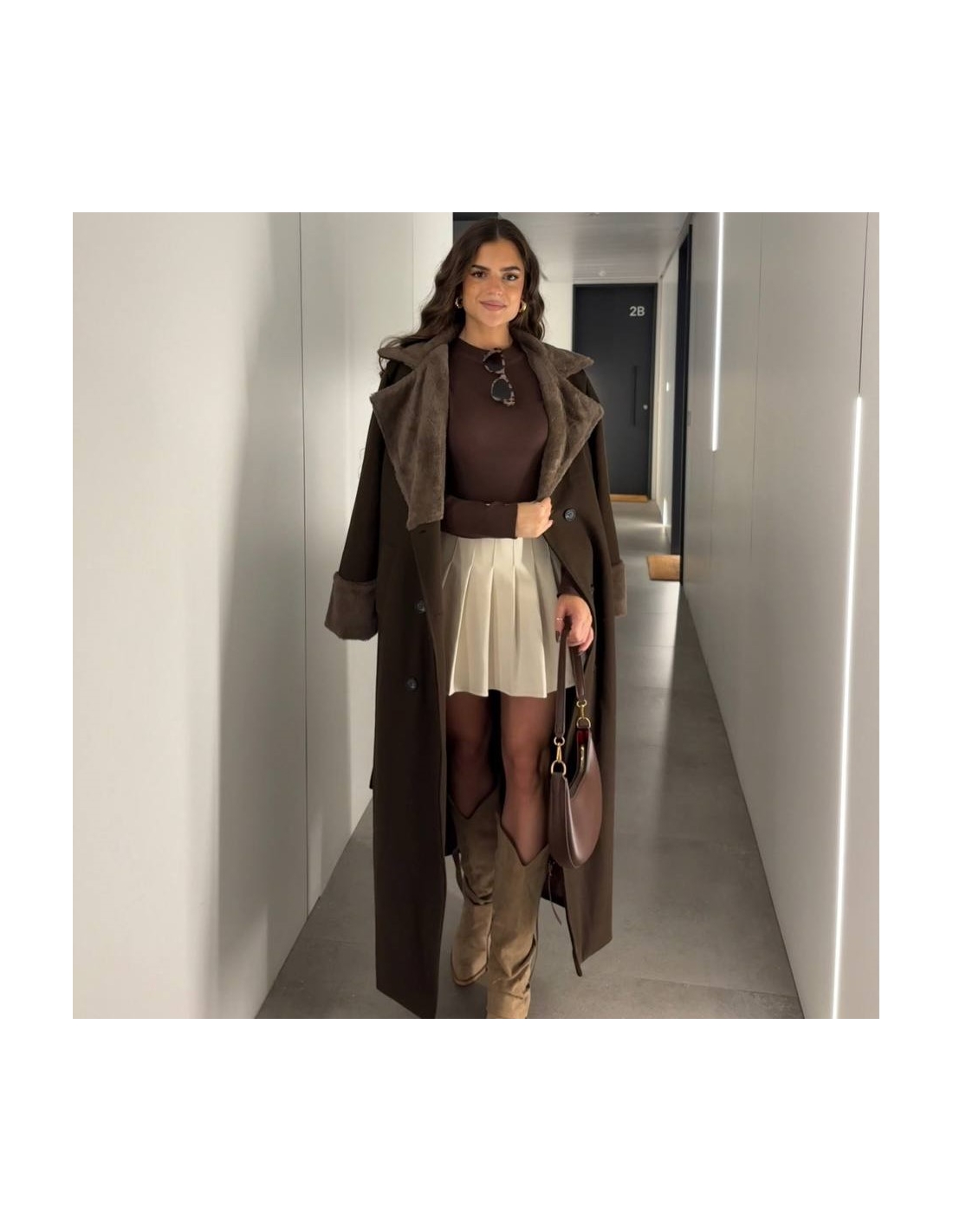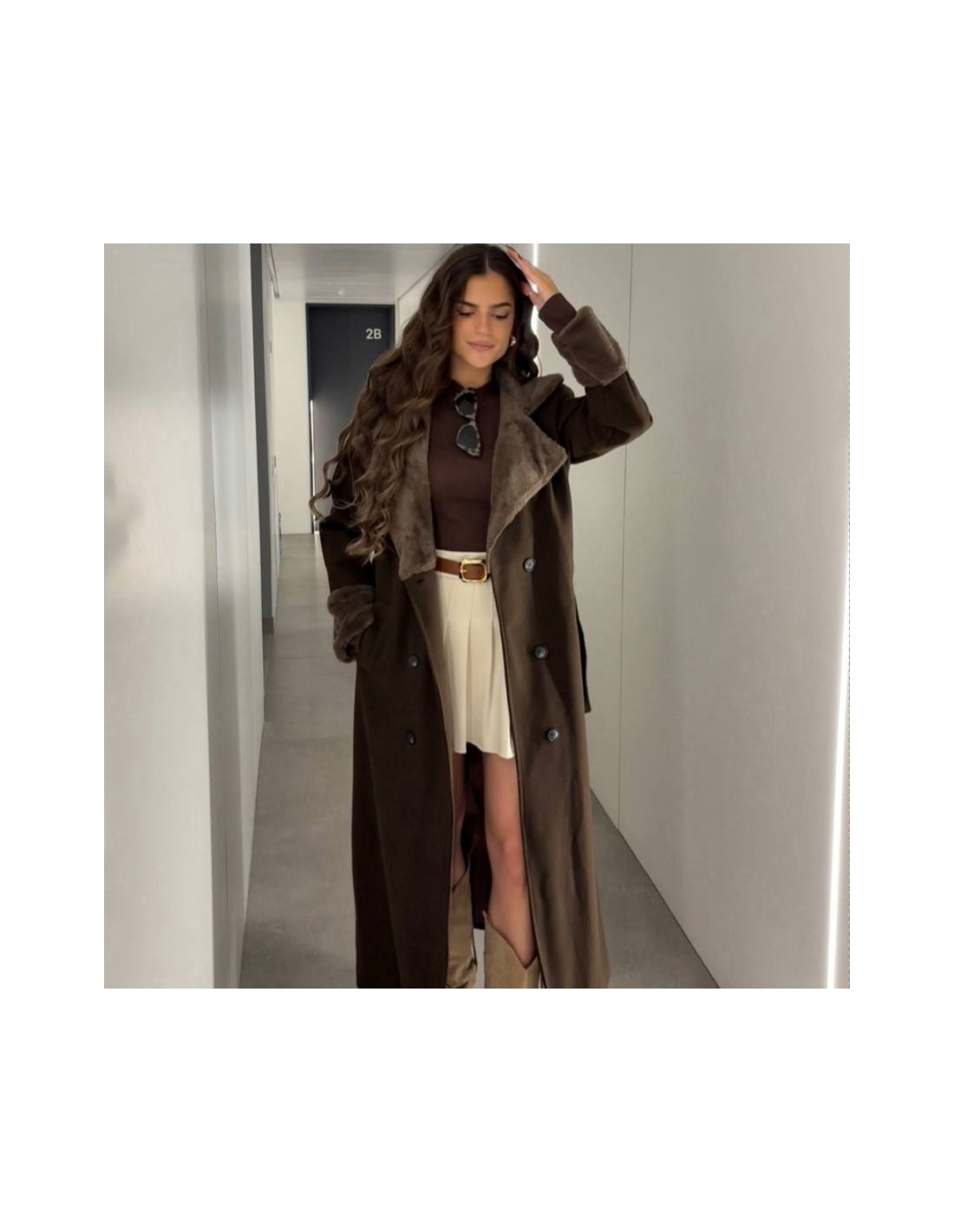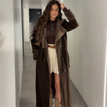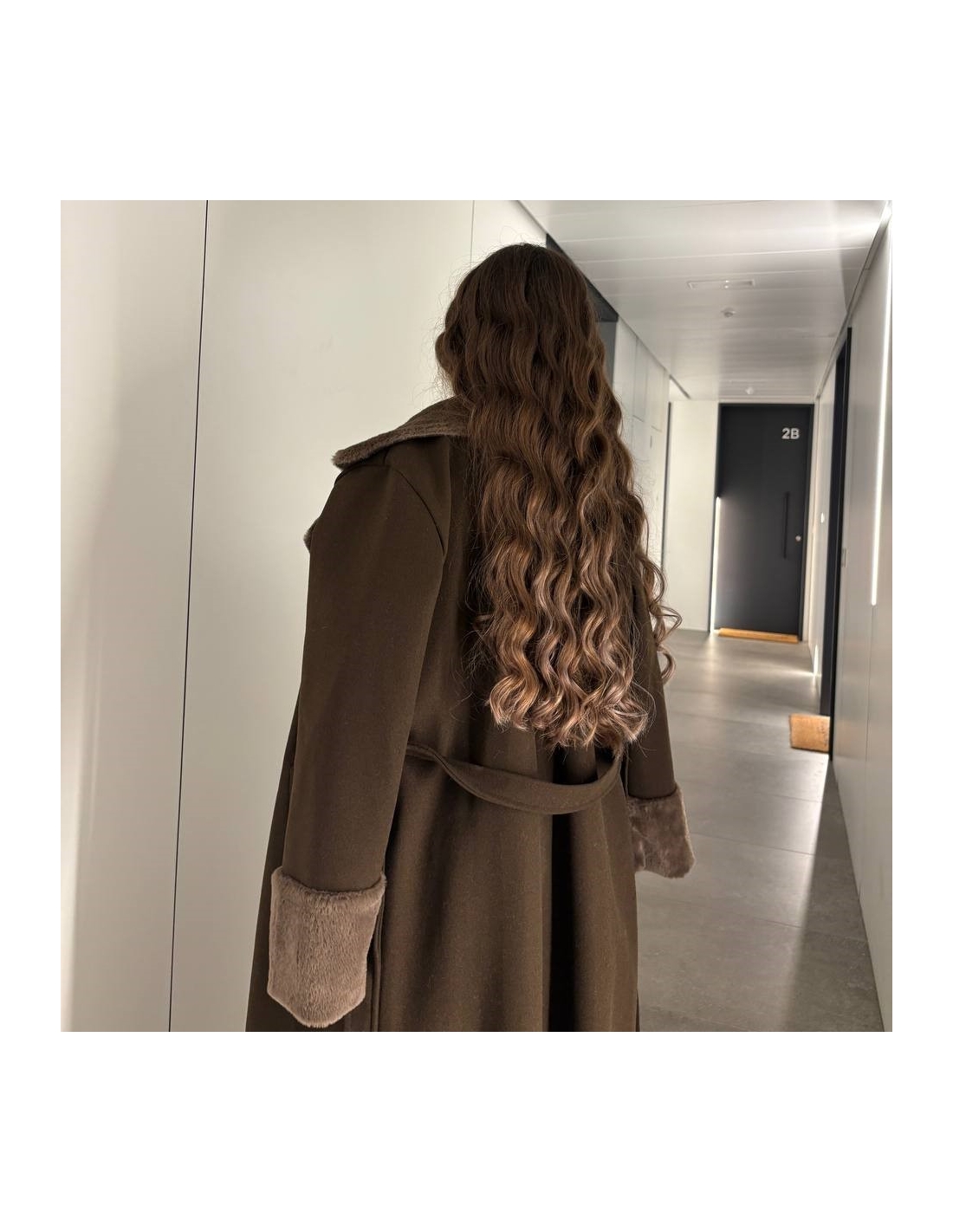 Abrigo de paño con pelito. Cinturón a tono. Cuello de solapa y puños con pelito a tono. Talla única.