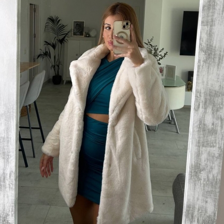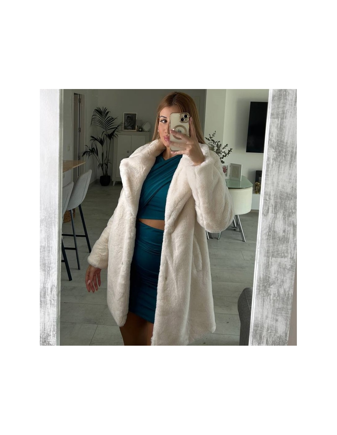 Abrigo de pelito crema con forro interior a tono. Cuello de solapa. Cierre delantero con botón. Talla única.