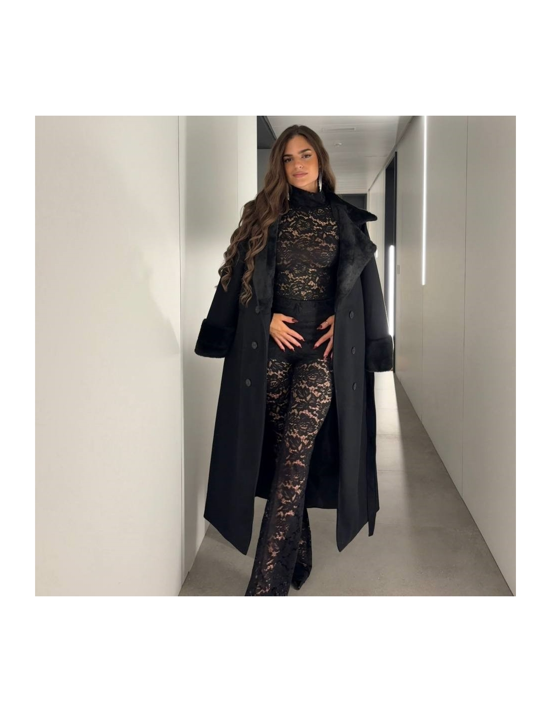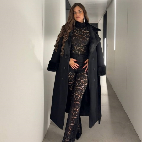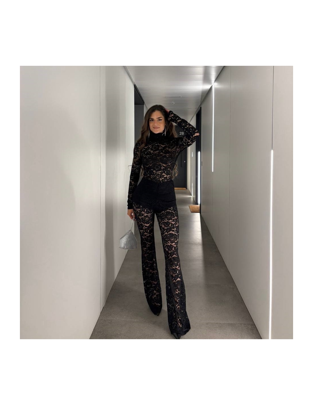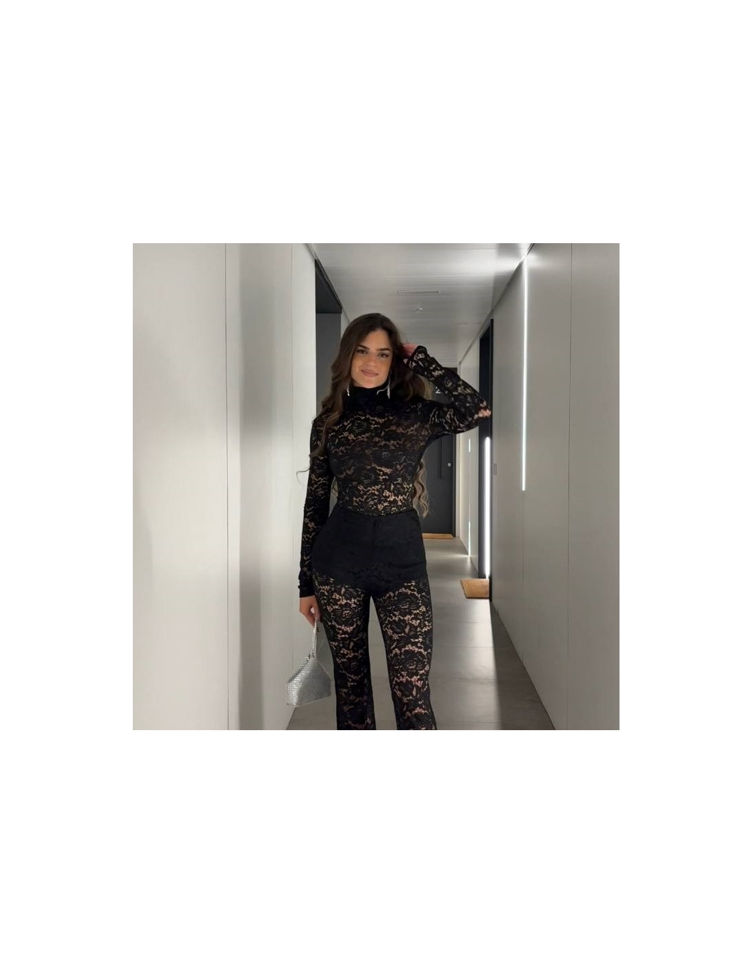 Conjunto encaje de top más pantalón de encaje a tono. Con forro mini interior a tono. Talla única